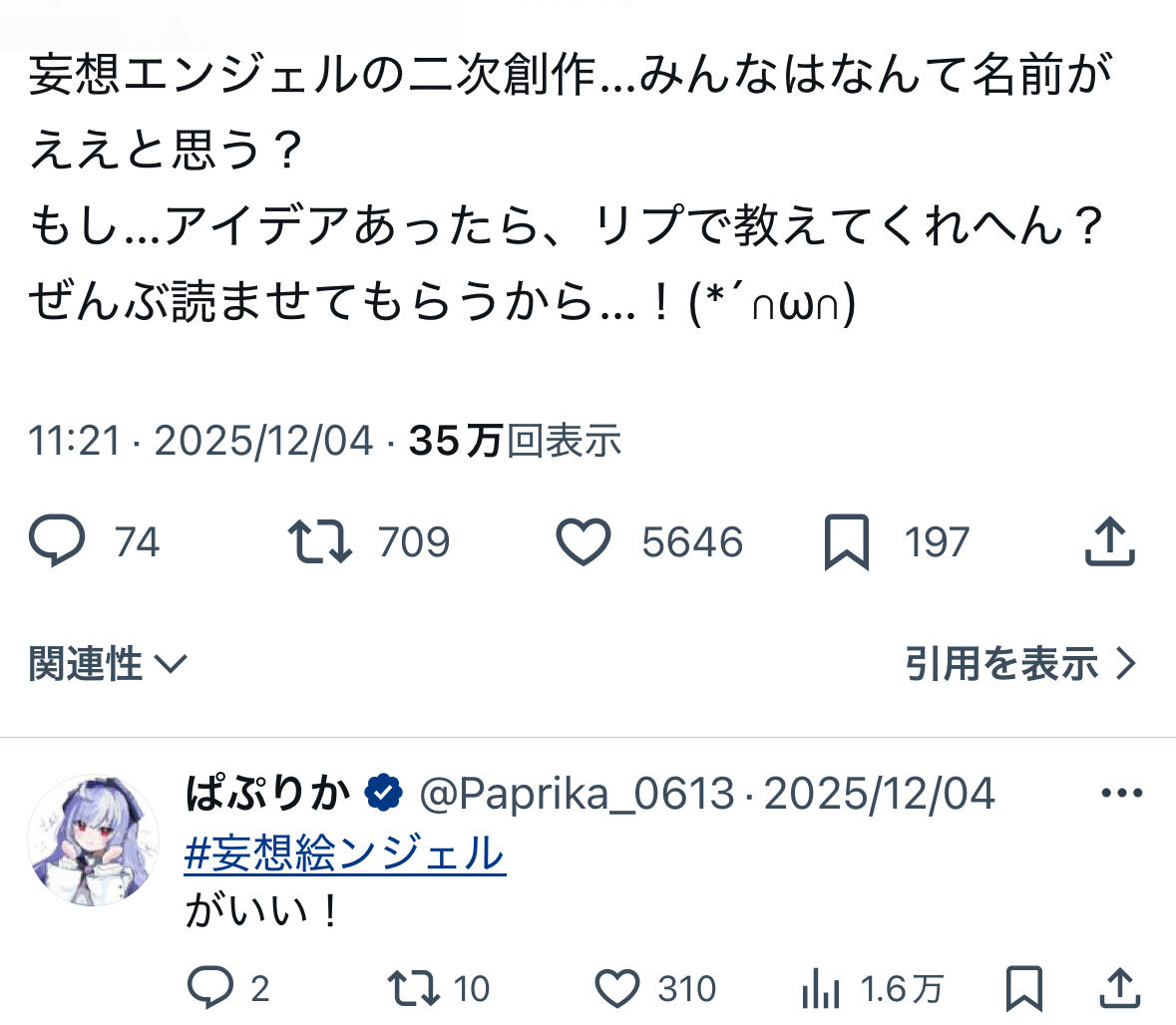 | … | 50625/12/26(金)20:34:07No.1386417299+クリスマスに妄想エンジェルのメンバーのSNSに張り付いて監視する人生を送りたかったンナ... |