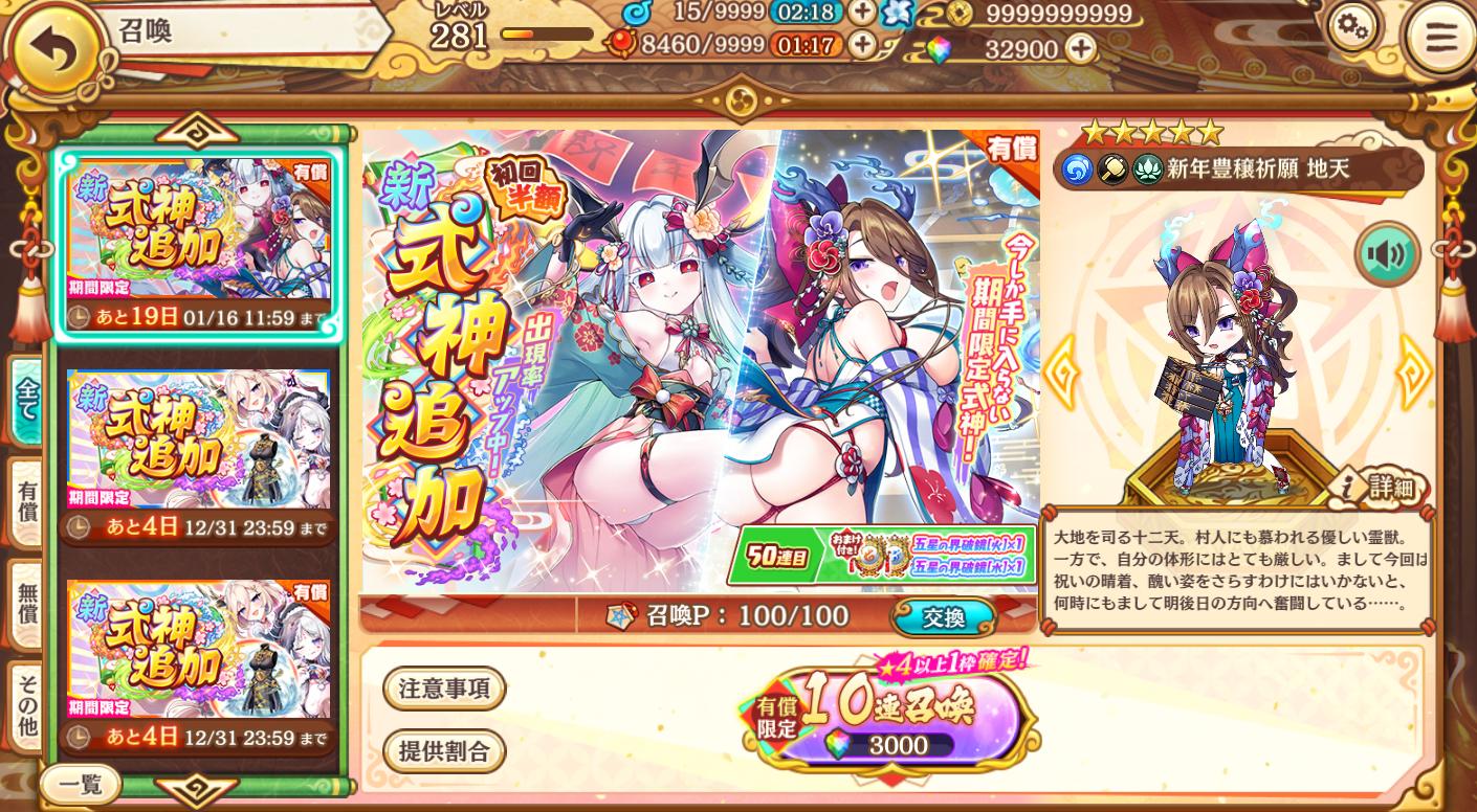 | … | 3525/12/27(土)12:40:57No.1386608933+式神追加お得石も補充があるからそちらもチェックナウっス |