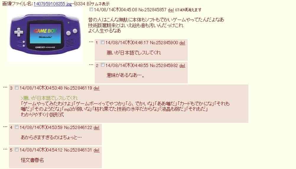 | … | 16925/12/27(土)13:16:21No.1386618976そうだねx5>この話の流れで悲しむのは普通ならPS2をレトロゲームと指摘された方だから語尾ぬを同僚として読み直して |