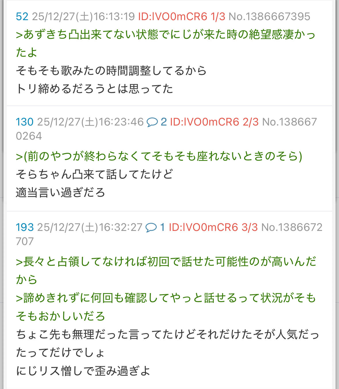 | … | 2525/12/27(土)16:07:49 ID:9UufFTtENo.1386665981そうだねx12>にじさんじの売名リレーでホロメン来れなかった人いたのかわいそう |