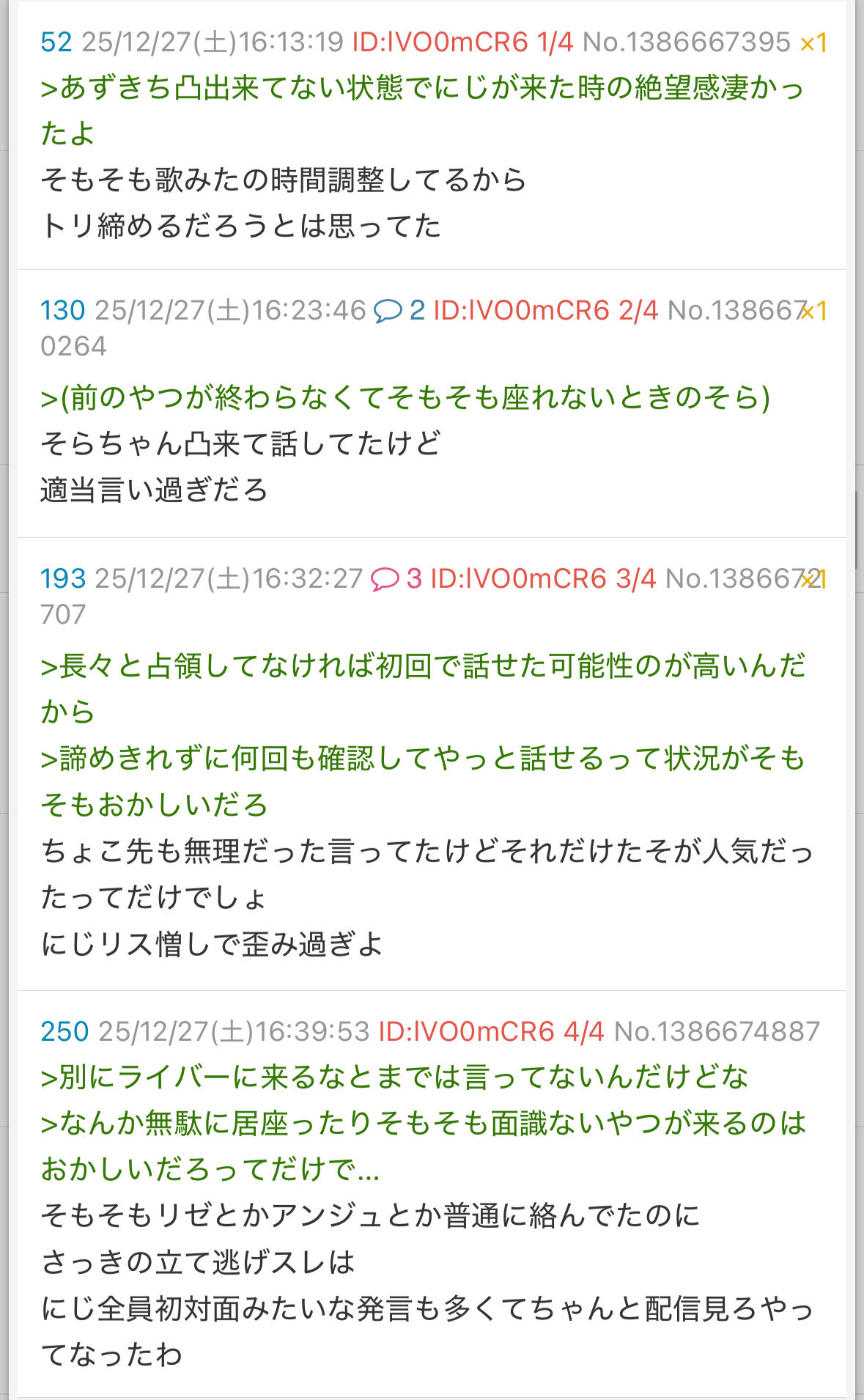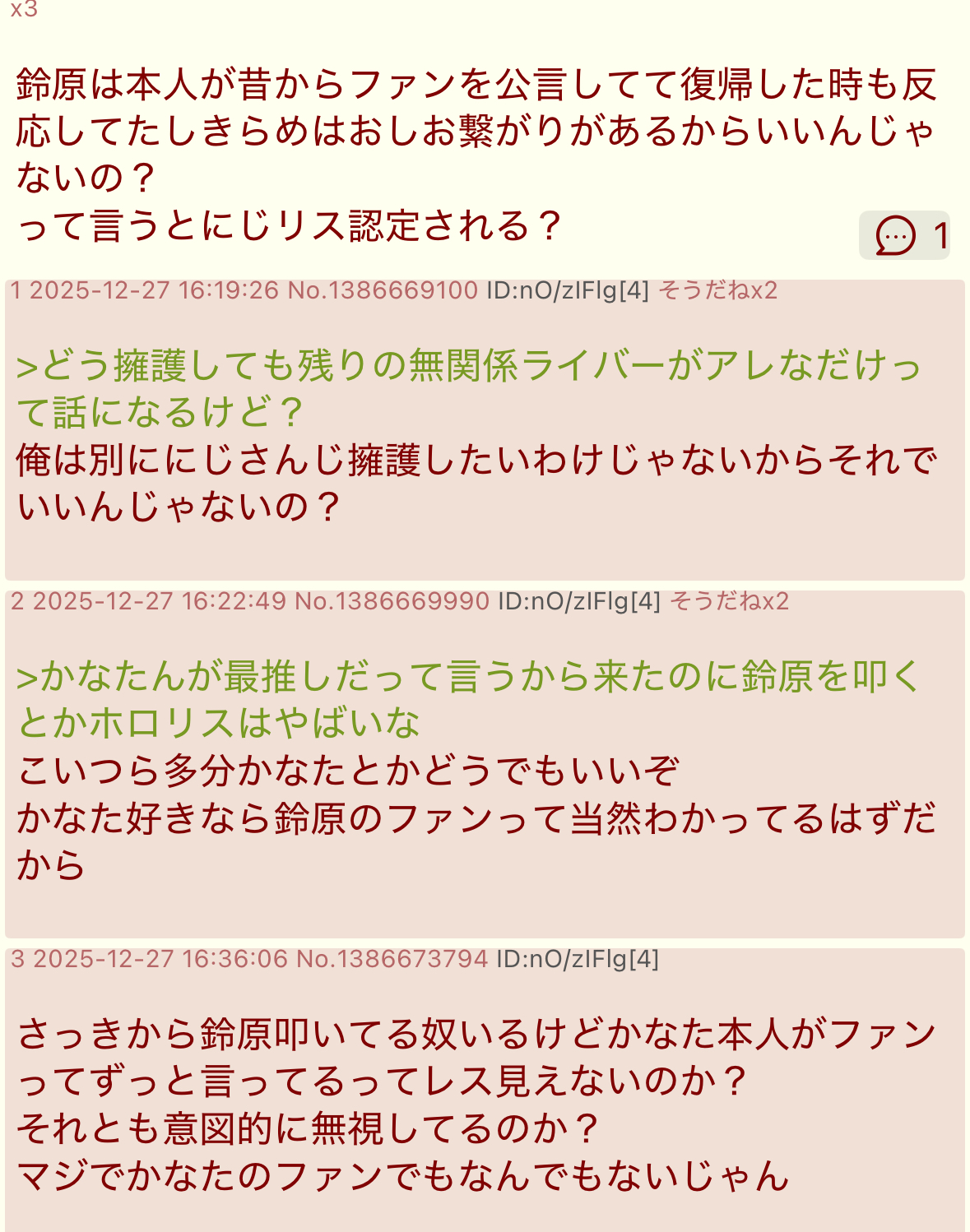 | … | 37325/12/27(土)17:13:15 ID:RdYvcxKANo.1386684340そうだねx8>ホロリスがにじさんじ粘着してるってマジだったんだな… |