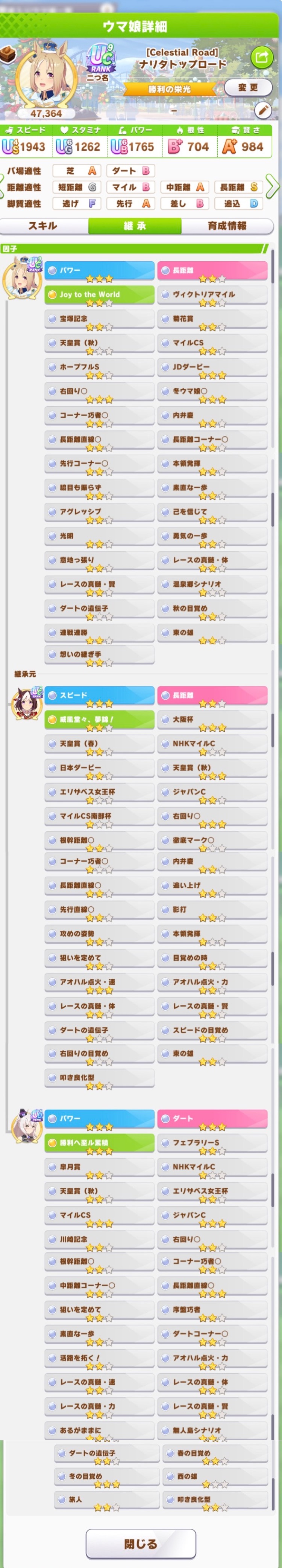 | … | 5425/12/27(土)20:07:06 ID:cdFg96K6No.1386747065そうだねx1まあダマGでもマイル適正ぐらいなら盛れますし… ラークみたいなシナリオのダート版欲しいですね… |