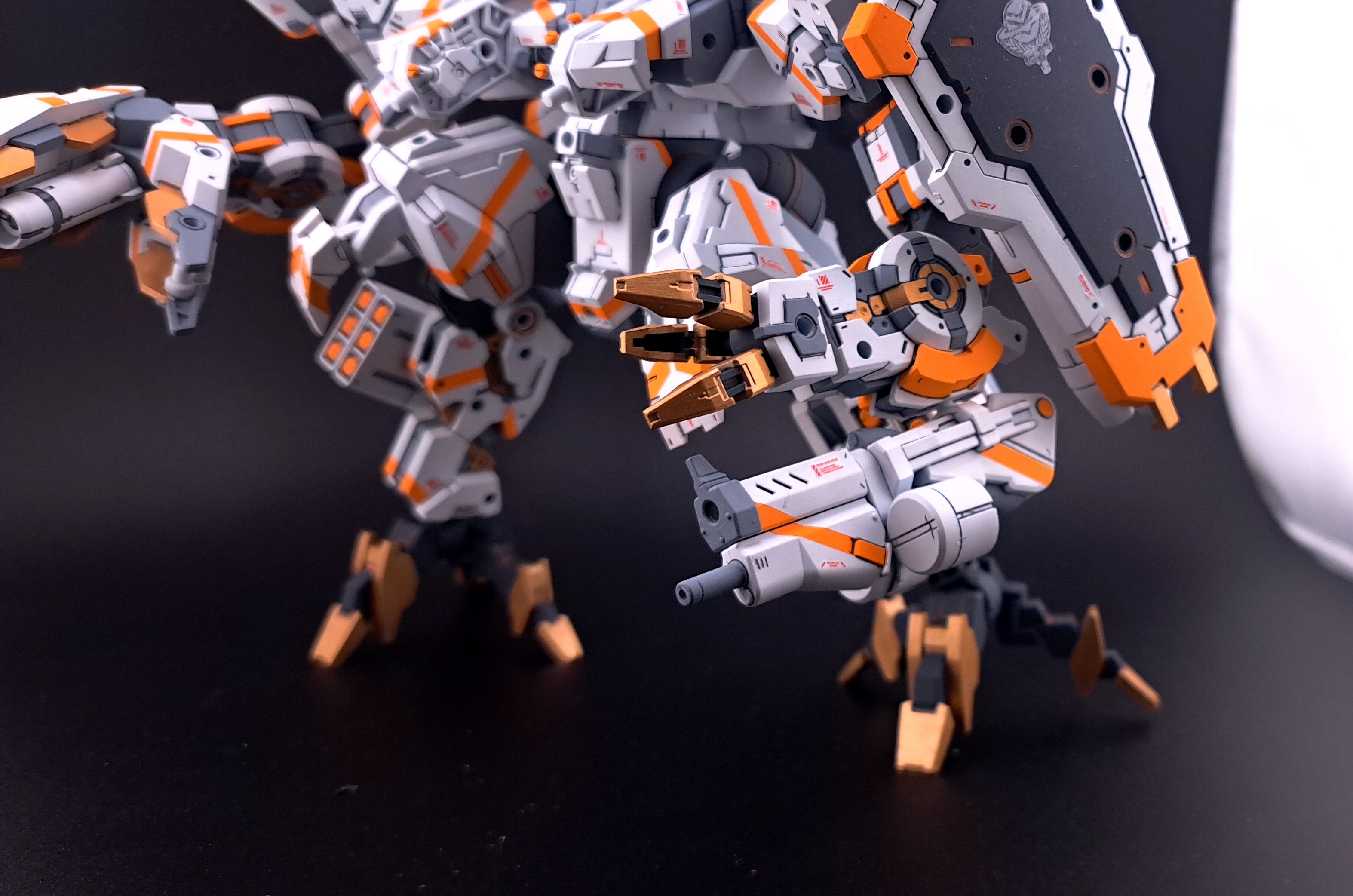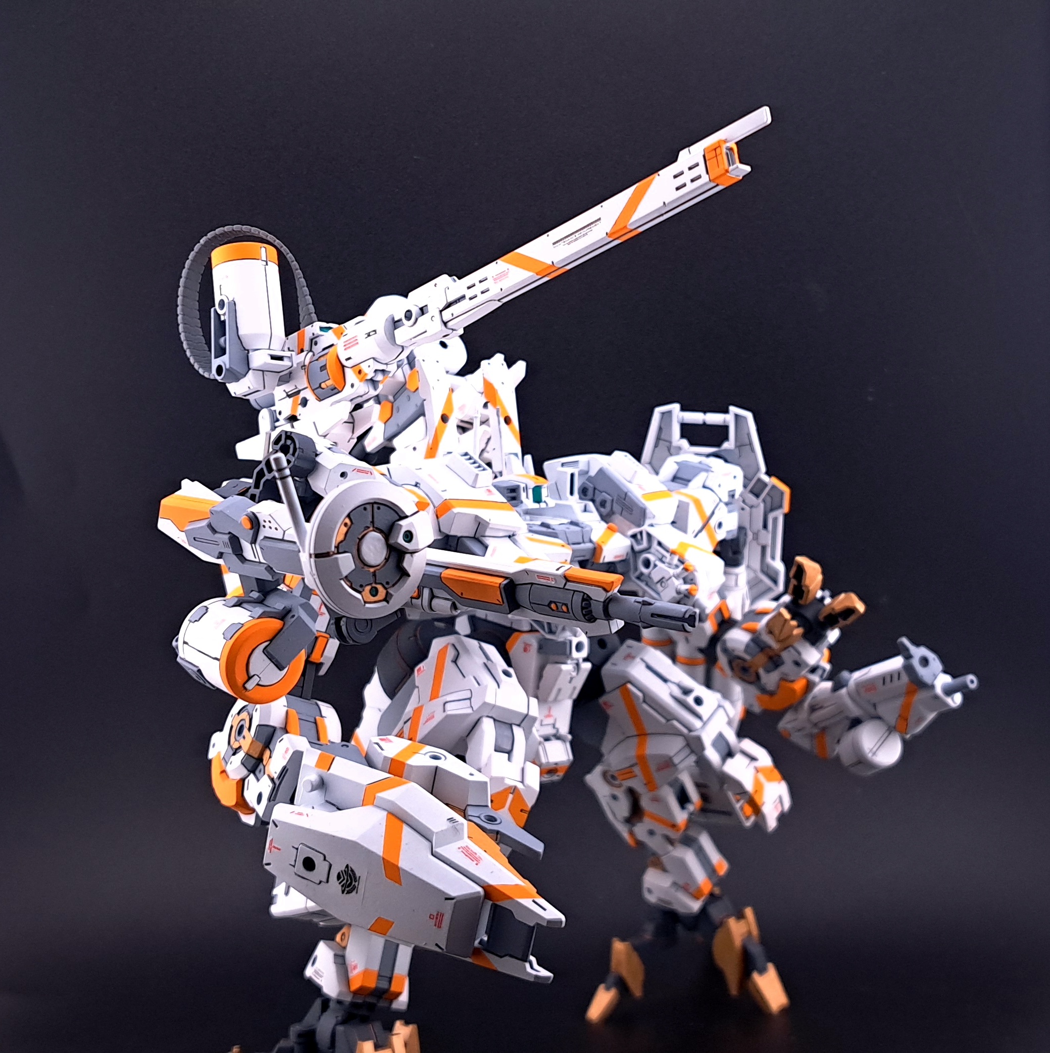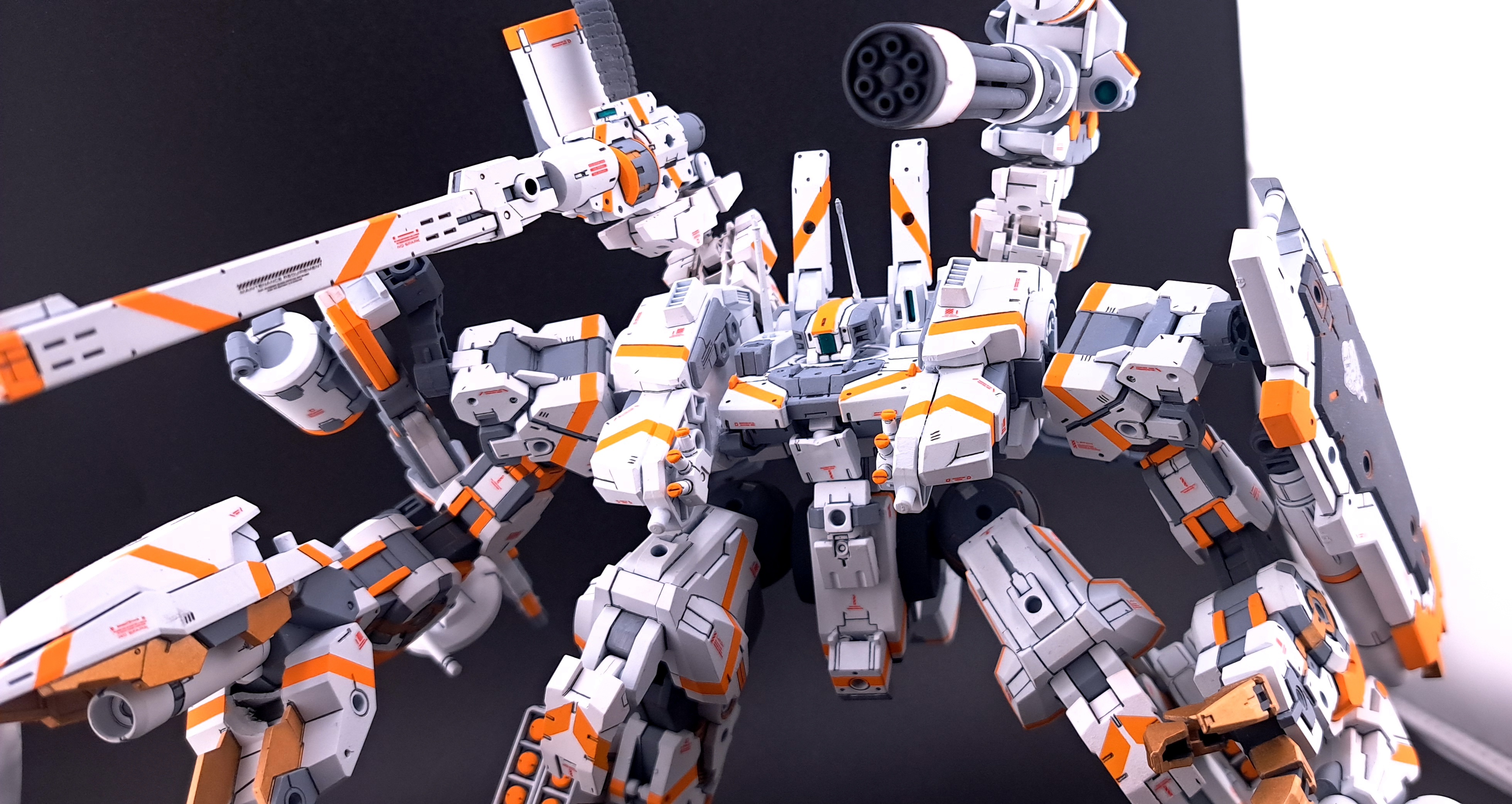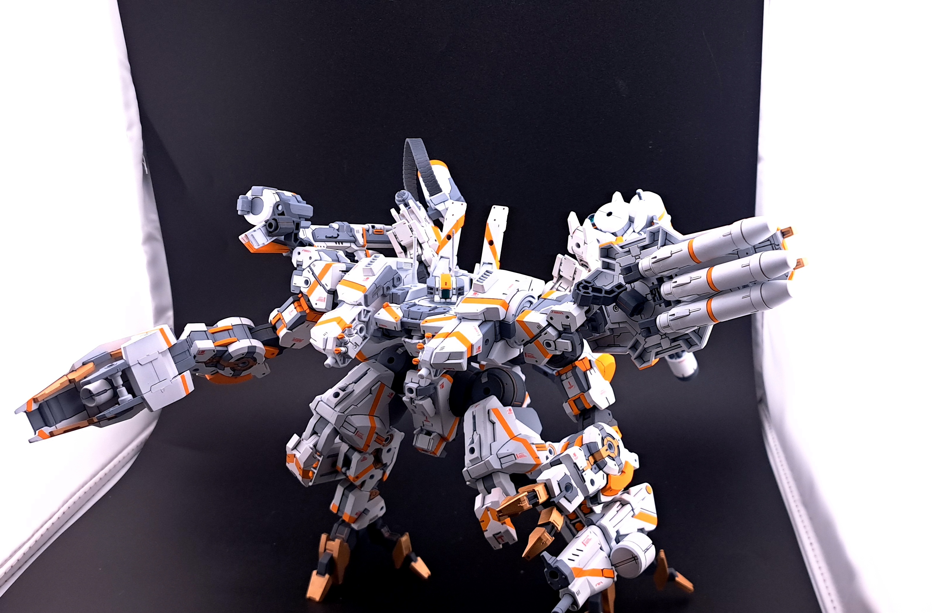 試験機会を伺っていたり死蔵されていたりした装備がこれ幸いとばかりに搭載され、バランスはさておき単機のエグザマクスとしては過剰を通り越して異常なまでの火力を有するに至っている。全備状態ではあまりの重量から周囲と足並みを揃えられないため、自走砲群扱いで防衛戦闘時の直接火力支援や膠着打開、または大規模決戦のだめ押し/切り札として投入される。