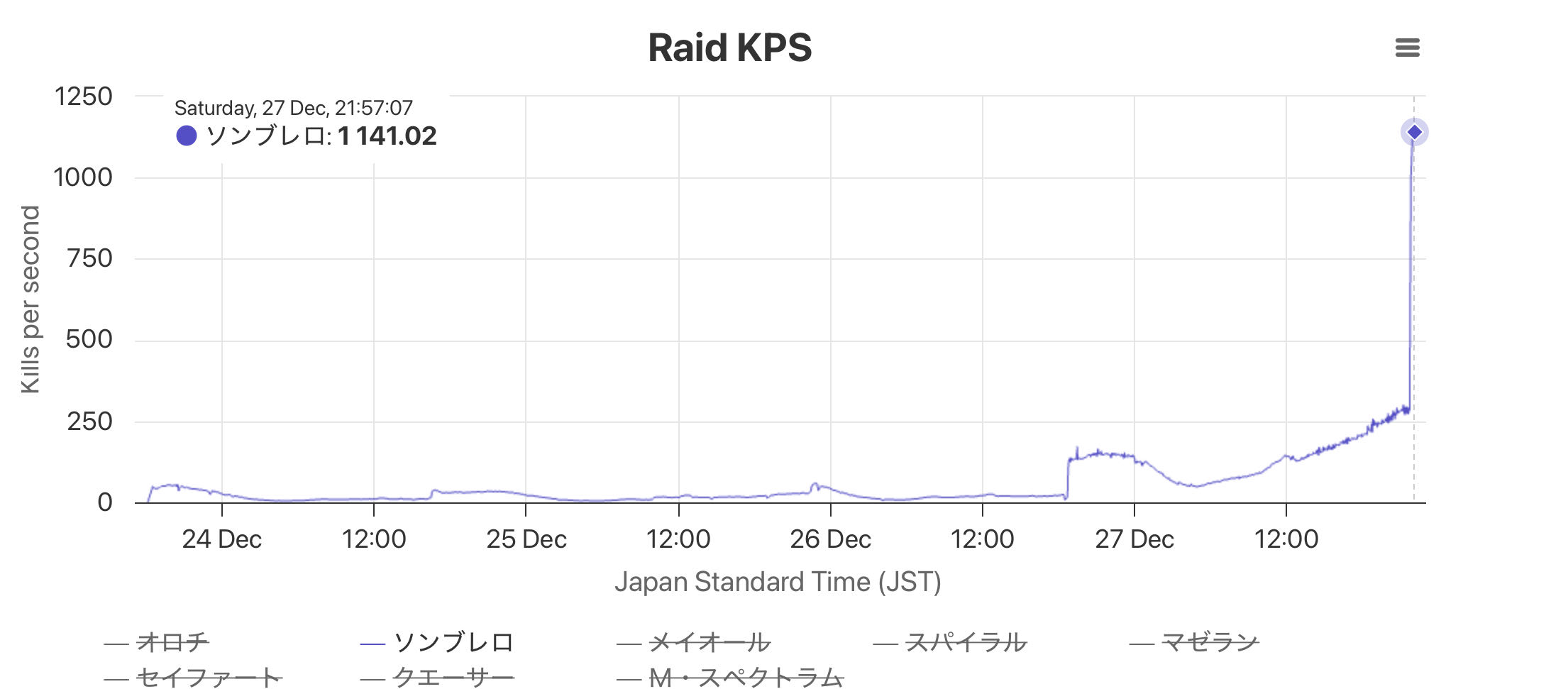 | … | 91825/12/27(土)22:14:11 ID:Wg5JWig6No.1386798642+えっ早くない!? 日付変わる頃って予測されてたのに |