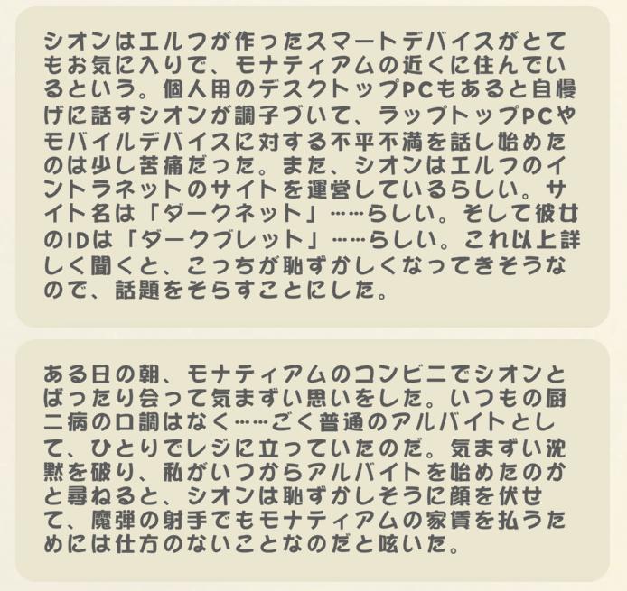 | … | 27125/12/27(土)23:20:49 ID:X3yiwjYgNo.1386821361+イベントスチルのゆるい感じの絵も好きにゃん |