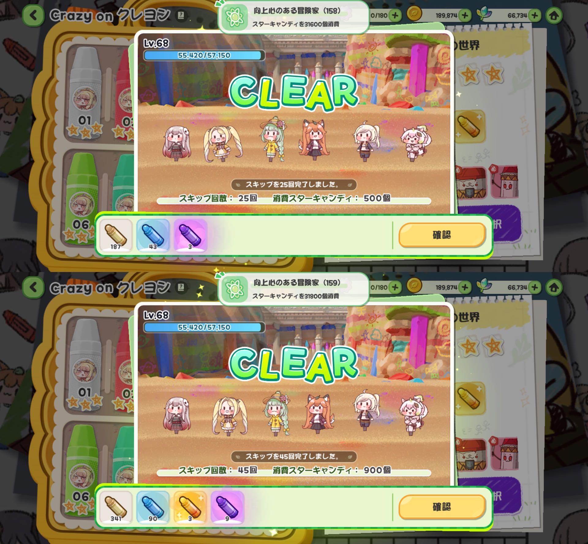 | … | 20925/12/27(土)22:52:38 ID:9bcHb5bUNo.1386812136+気になったからクリスマスクレヨンパックと星飴パスの効率を比べたにゃん |