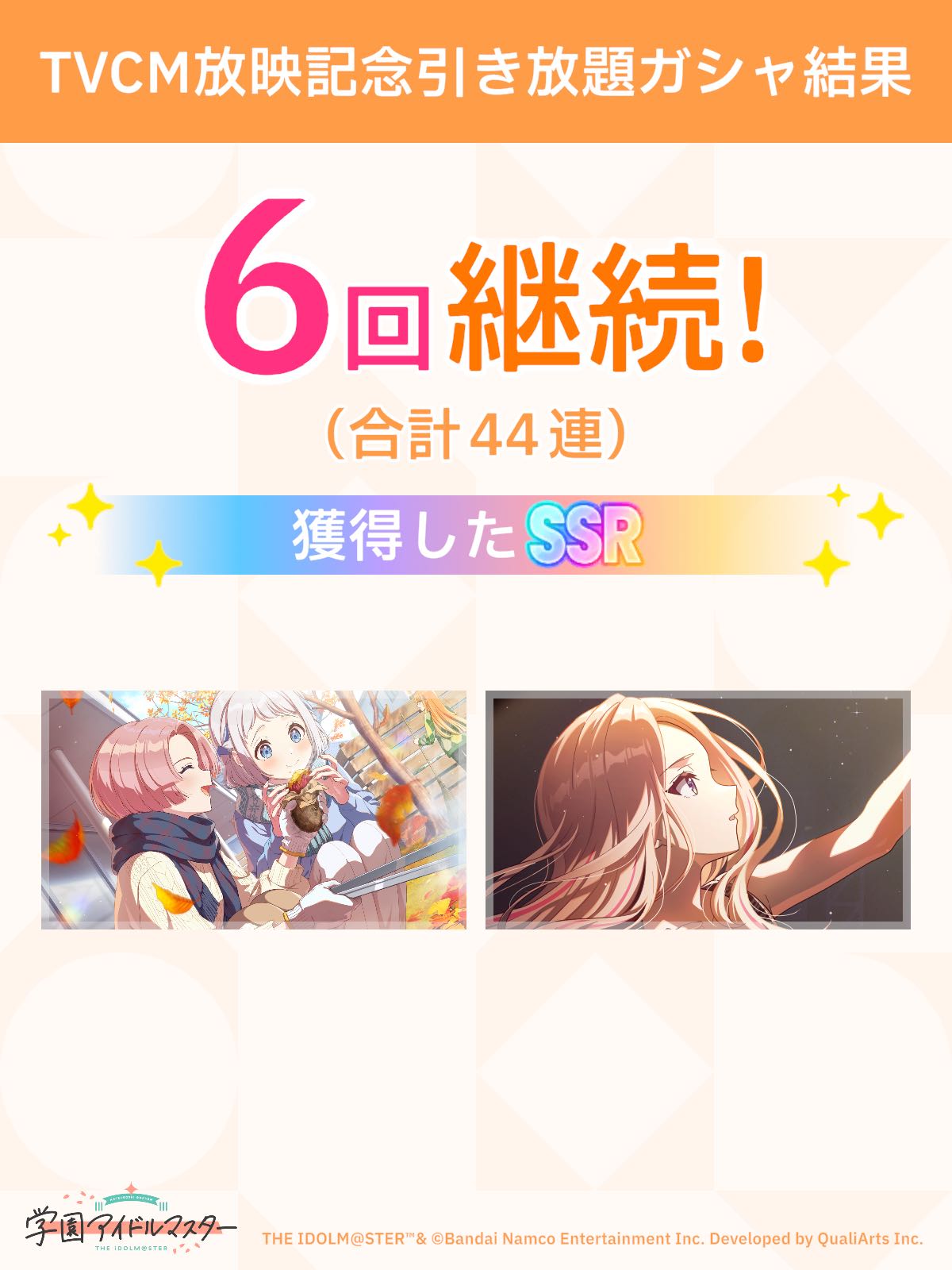| … | 1125/12/28(日)10:58:55No.1386938372+>2曲目Pアイドルの被りとかだと悲しいですわ 2凸すると強化される方も多いので2枚引くのは割と重要ですわ |