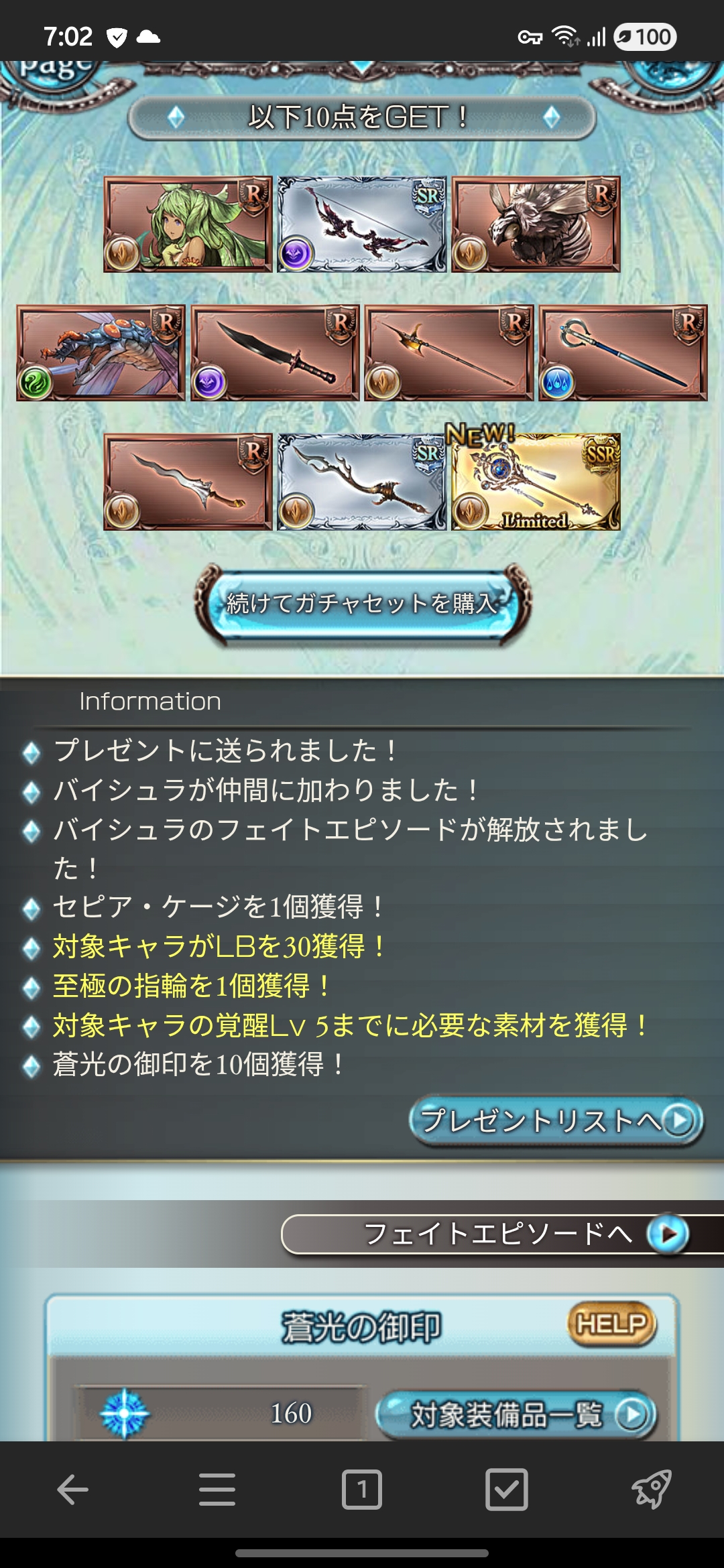 | … | 9325/12/29(月)05:33:34No.1387271332+10連でブレイク入って20とブレキ20の合計50連でバイシュラとベルソーが来てくれて小躍りしてるんだよ!! |
