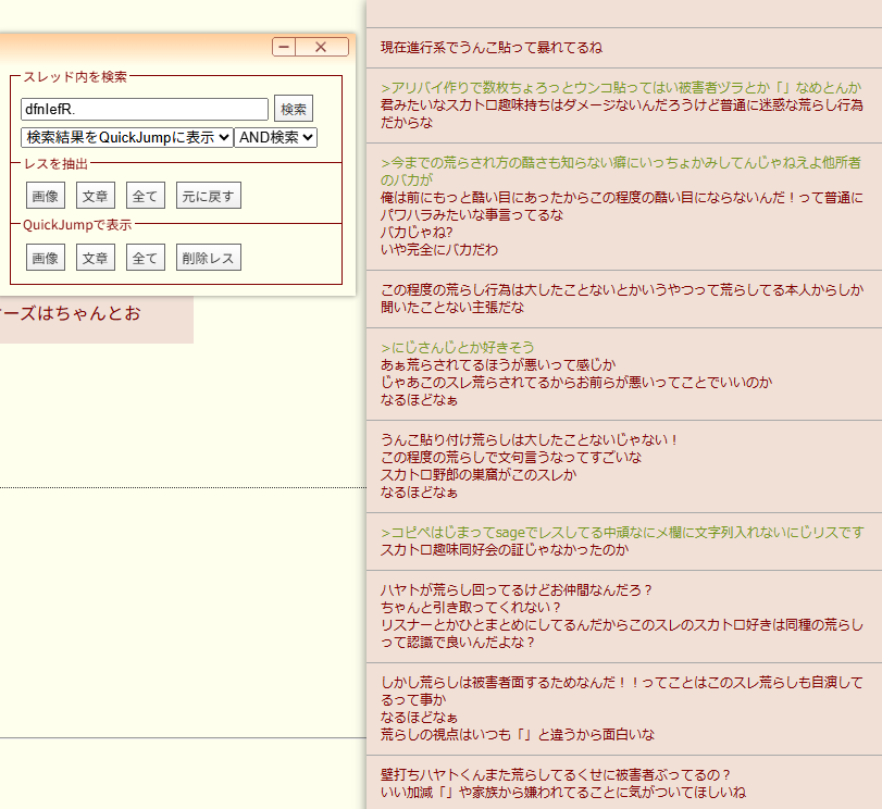 | … | 4825/12/29(月)17:00:41No.1387412765+荒らしてるハヤトはどのレスがなーされたかよくわかってるだろ |
