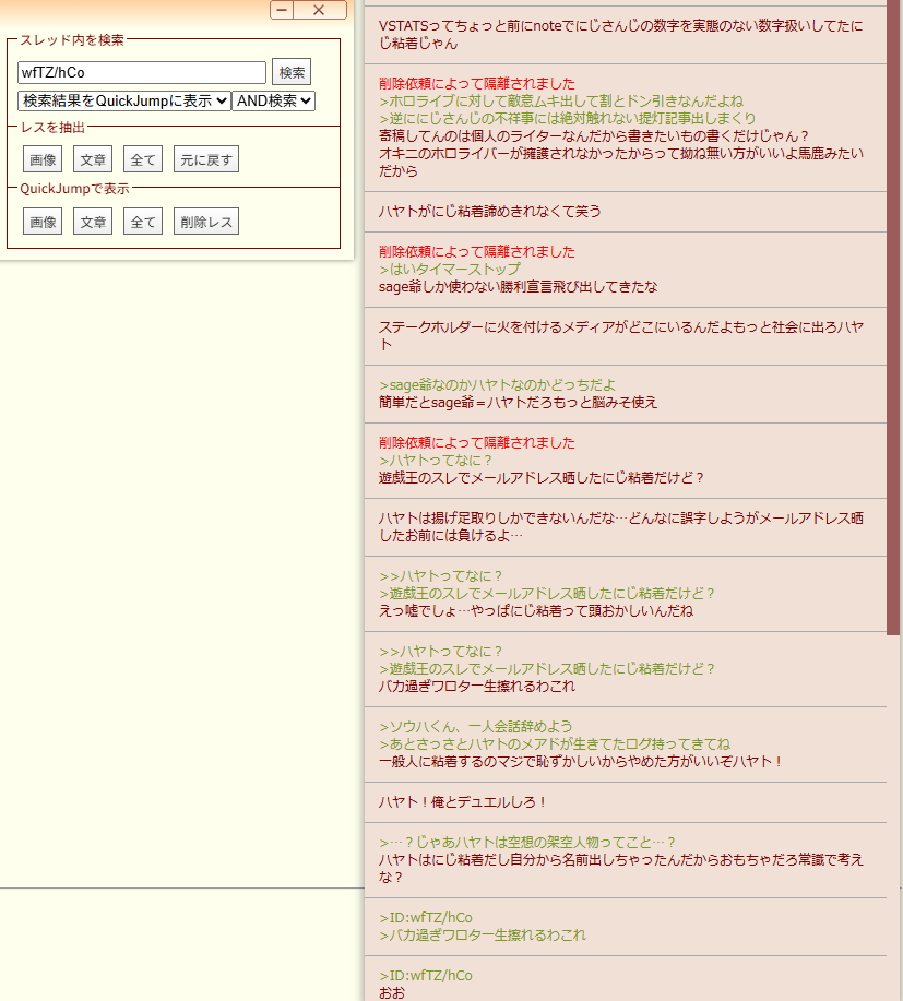 | … | 1725/12/29(月)16:46:01No.1387409067そうだねx20ホロ粘着に失敗したにじさんじリスナーが「にじ粘着」だなんだと拗ねながらコピペしたレスがなーされた |