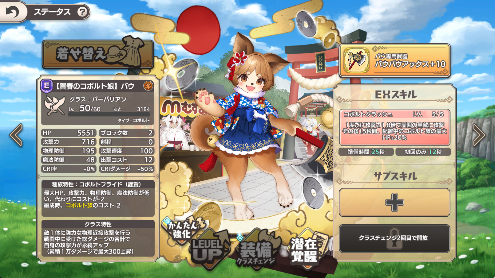 | … | 3025/12/29(月)16:53:30No.1387410999+ウスコちゃんの気軽にクリティカル上限25%アップ クリティカルプッシュ時代の初期に出た癖にやたら強いってしみじみ思うわん |