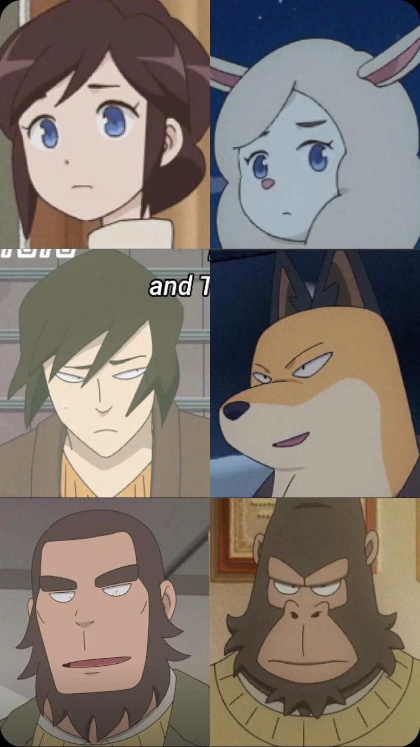 | … | 11325/12/29(月)20:38:35No.1387488617+>オッドタクシーは鬱病で周りの人間みんな動物に見えてる人視点で進むサスペンスだから |