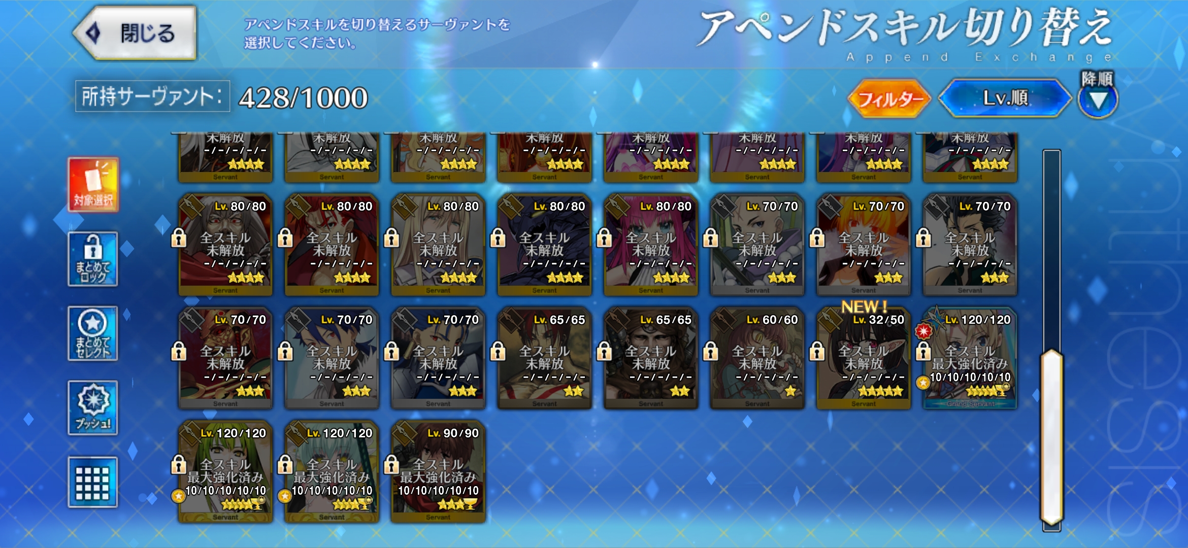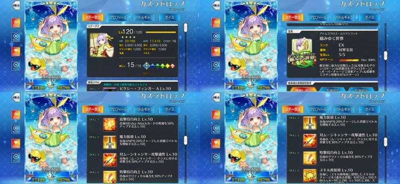 | … | 7925/12/30(火)21:51:07 ID:bTMdkf/sNo.1387862696そうだねx1>>レベル120アペンド全部開けようとすると宝具6必要になるのでそれが120 |