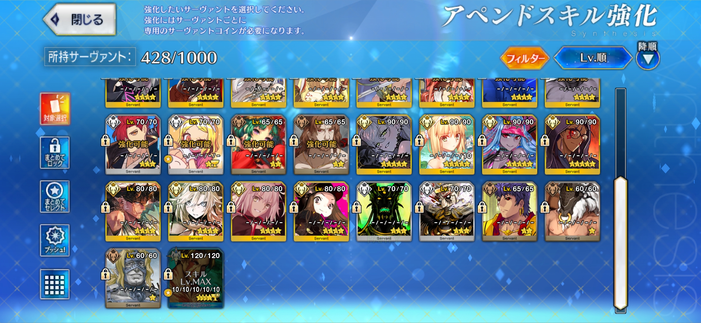 | … | 8525/12/30(火)21:51:36 ID:aqAe.en6No.1387862894そうだねx4>レベル120アペンド全部開けようとすると宝具6必要になるのでそれが120 |
