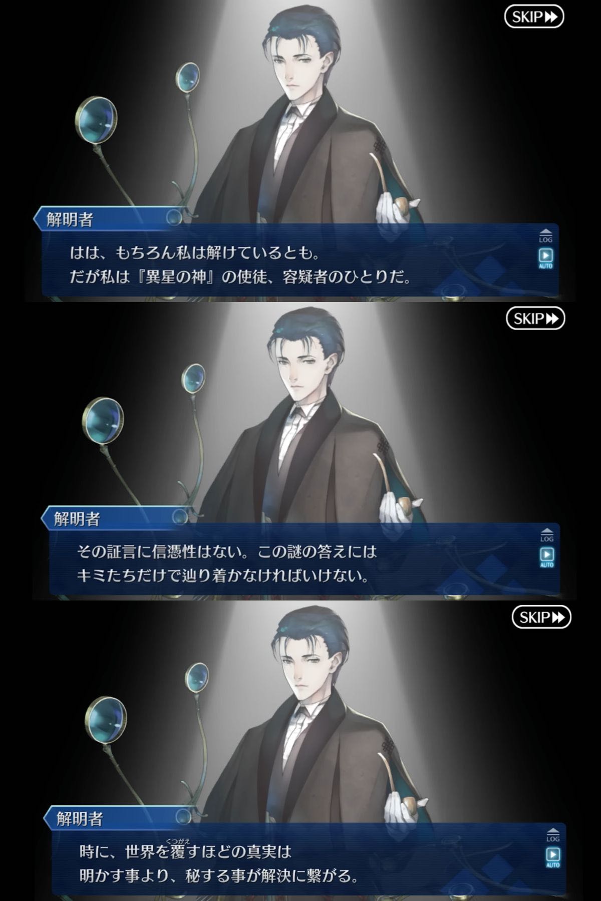 | … | 85825/12/31(水)08:36:58 ID:H.d49slQNo.1387970570+後はまあキャスターのホームズとルーラーのホームズで性格というか思想が結構違うのが作中で言われる上で終章で呼んだのがどちらか不明ってのがなんか罠っぽく見える |