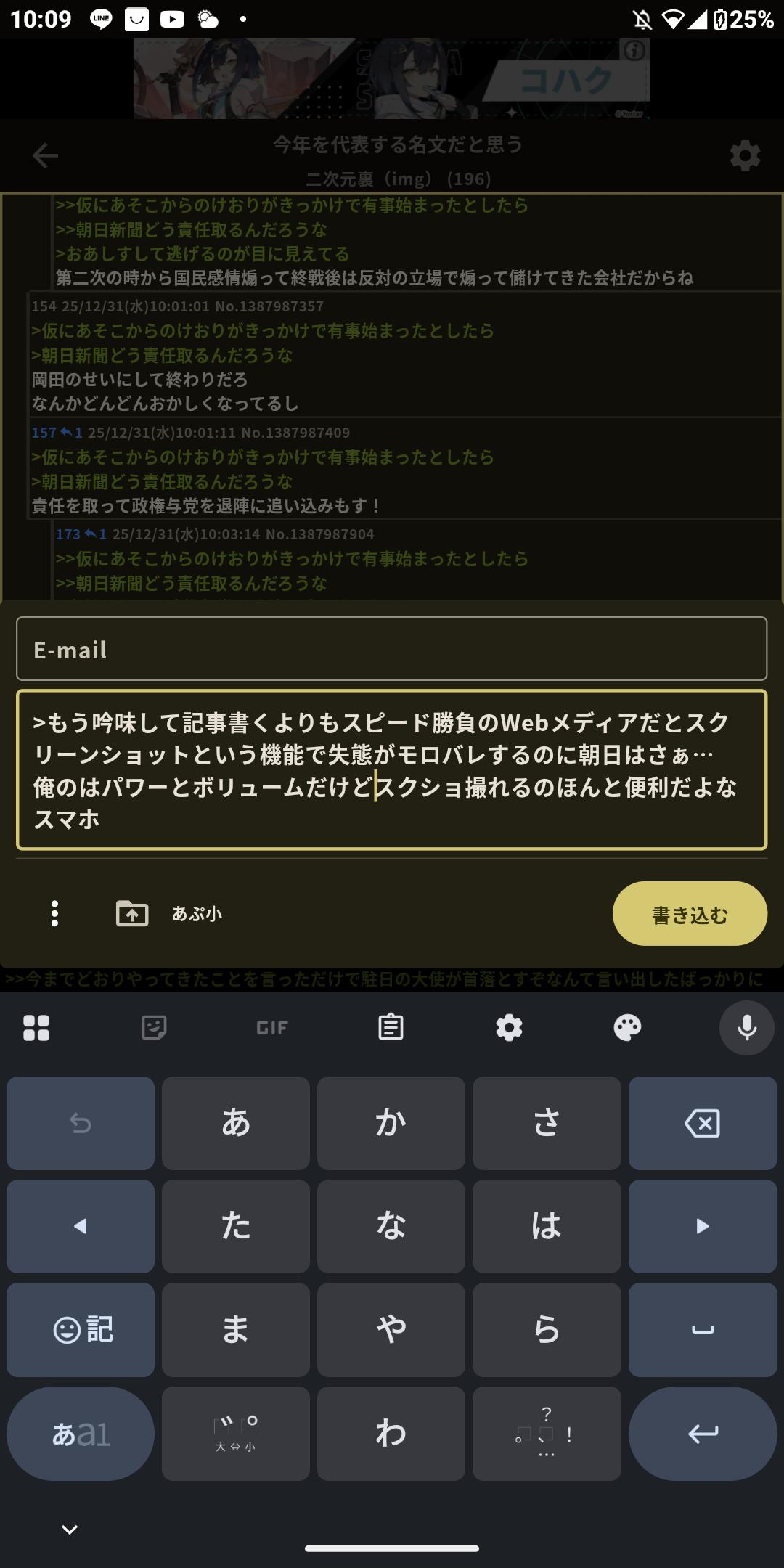 | … | 5525/12/31(水)09:41:35No.1387982834そうだねx4>日本と台湾のネット民から馬鹿にされまくってやめちゃったの繊細過ぎる |