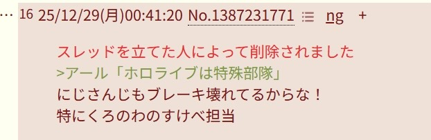 | … | 2525/12/31(水)10:05:37No.1387988417そうだねx5荒らしの鳴き声はにじホロにじホロシャンシャンシャン! |