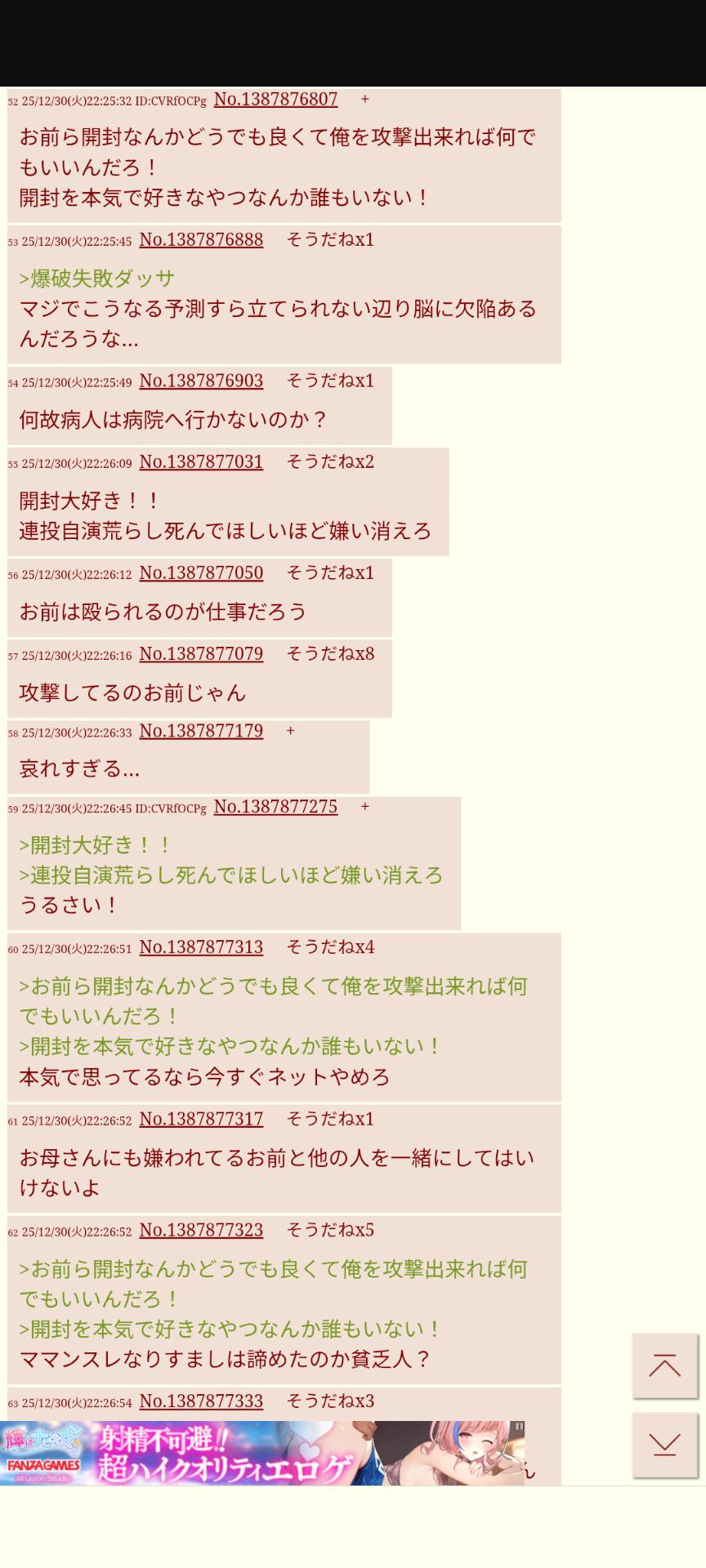 | … | 6125/12/31(水)10:19:09No.1387991517+大晦日だってのに痴部晒されたにじリス発狂してんのかよ |