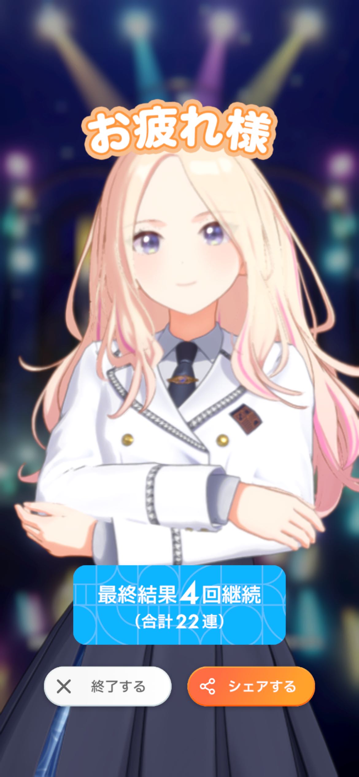 | … | 3325/12/31(水)09:44:33No.1387983498+>>fu6101367.jpg >>まぁまぁでしたわね >憎いよぉ〜 有償800ガシャでSSR0だったので許してくださいまし |