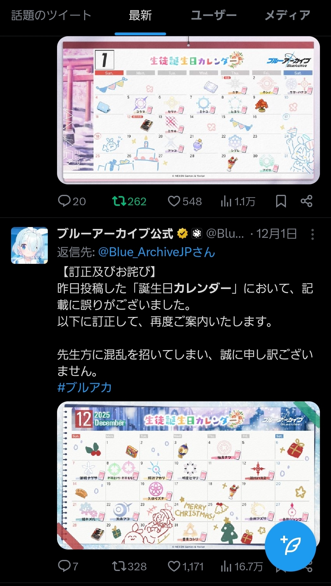 | … | 1725/12/31(水)17:04:51No.1388098939+https://x.com/KR_BlueArchive/status/2006274123832693170 |