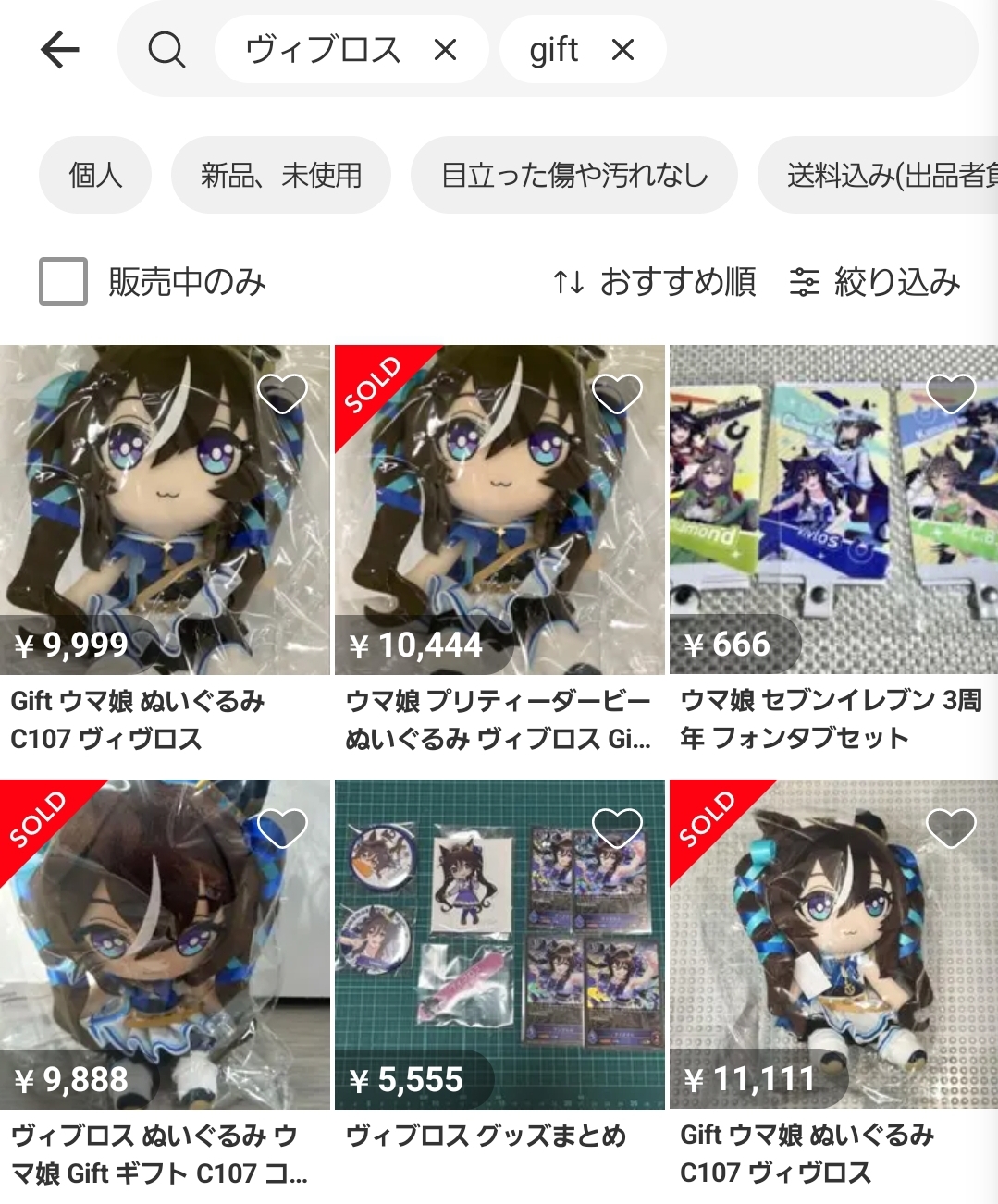 | … | 8125/12/31(水)19:03:27No.1388135742+>>3万円くらいする高いフィギュアとかならともかくぬいはそんなにプレミアム付きそうではないな |