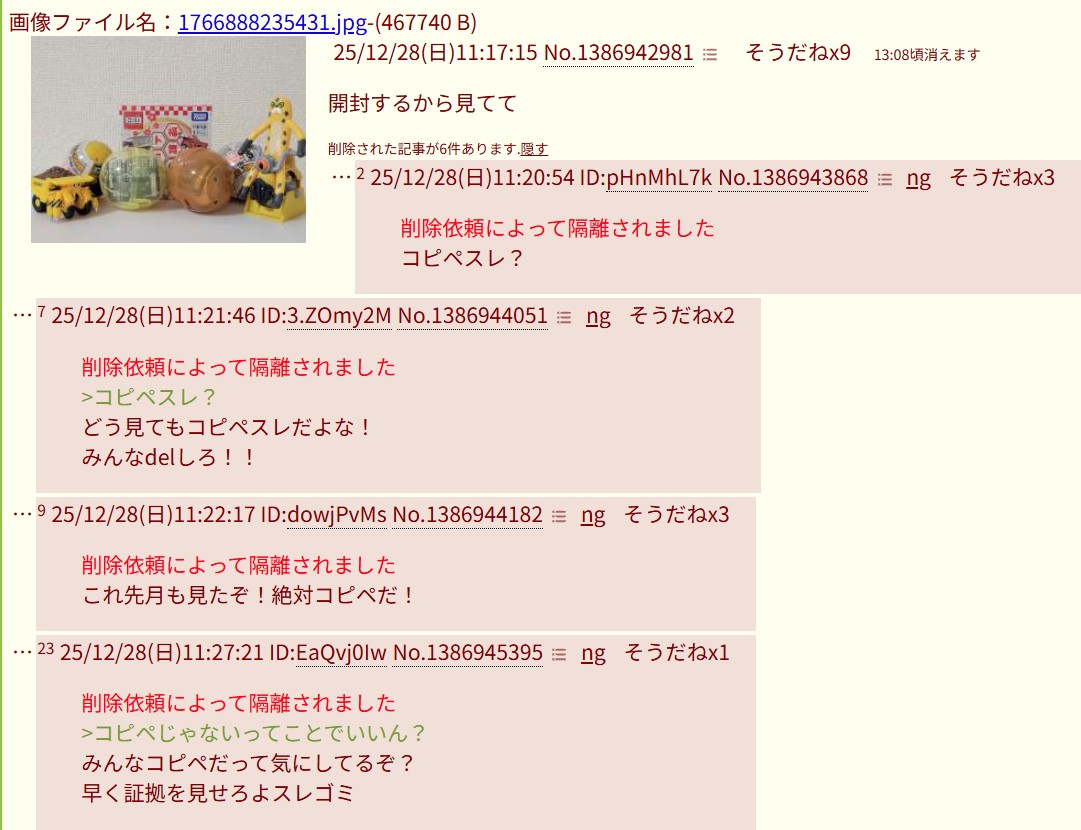 | … | 325/12/31(水)19:49:31 ID:RPoAuQVsNo.1388152941そうだねx2削除依頼によって隔離されました |