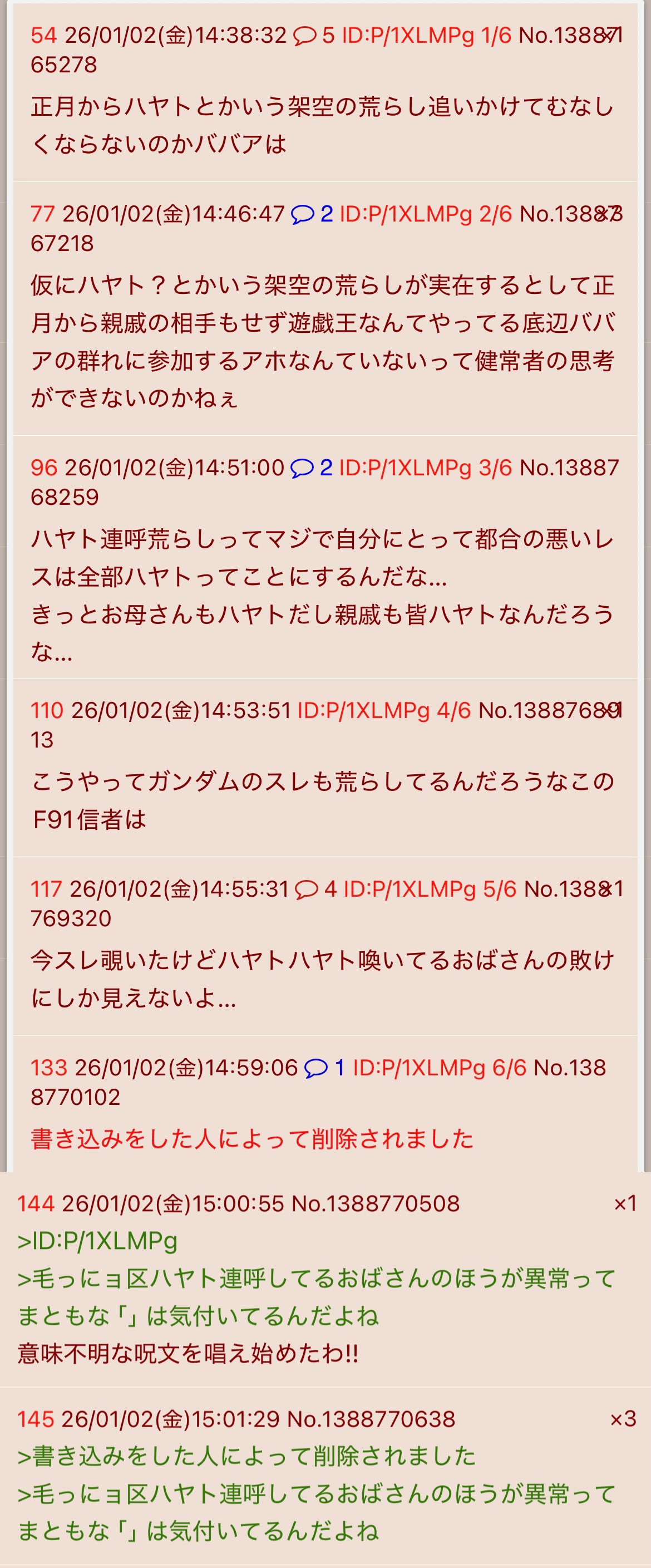 | … | 4026/01/02(金)15:14:38No.1388773391+>正月からこんなスレ立てるしかやることないのかいハヤト |