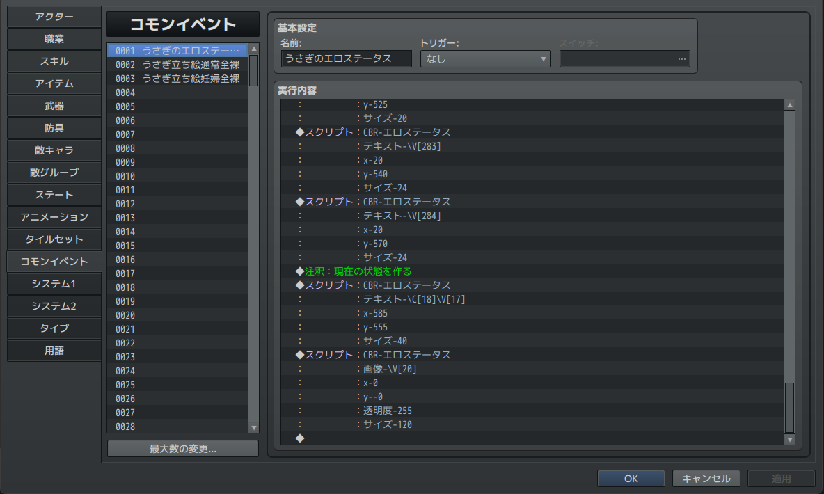 | … | 9326/01/02(金)15:48:16No.1388781328そうだねx3短編ジーコを作るべく早速エロステータスプラグインを入れて大体できたんだけど |