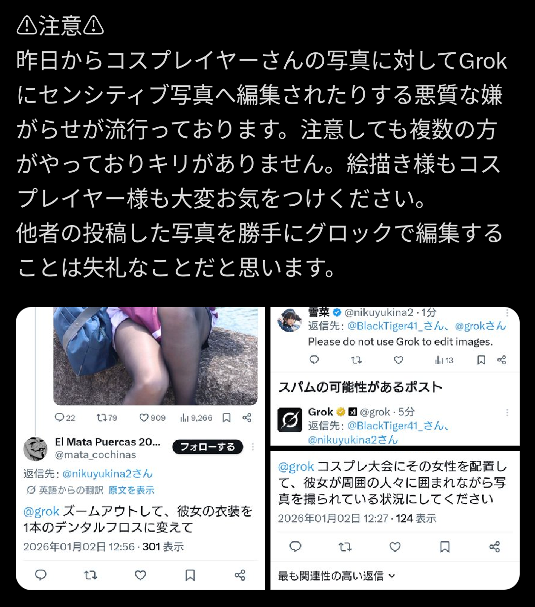 | … | 3326/01/02(金)18:08:32No.1388818112+>これレイヤー本人が露出高いのあげたらBANされるから控えめにしてるのにこれだとBANされないってのが駄目 |