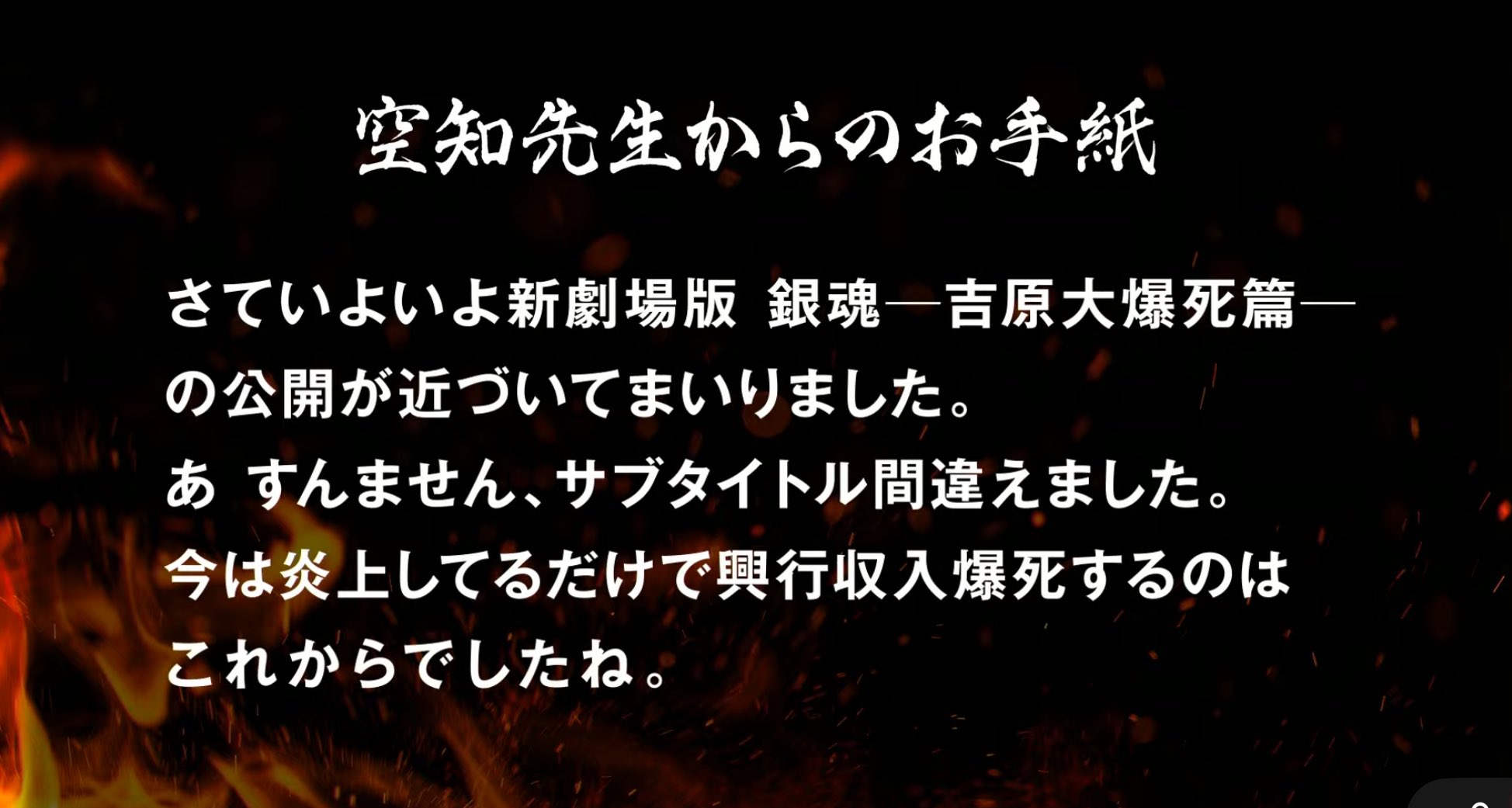 | … | 66726/01/03(土)02:45:19No.1388985329+>どうせ映画やるなら銀魂ダークネスとかにしてPG-18くらいて銀さんがハレンチしまくりながらなんやかんや平和になるやつやらないかな |