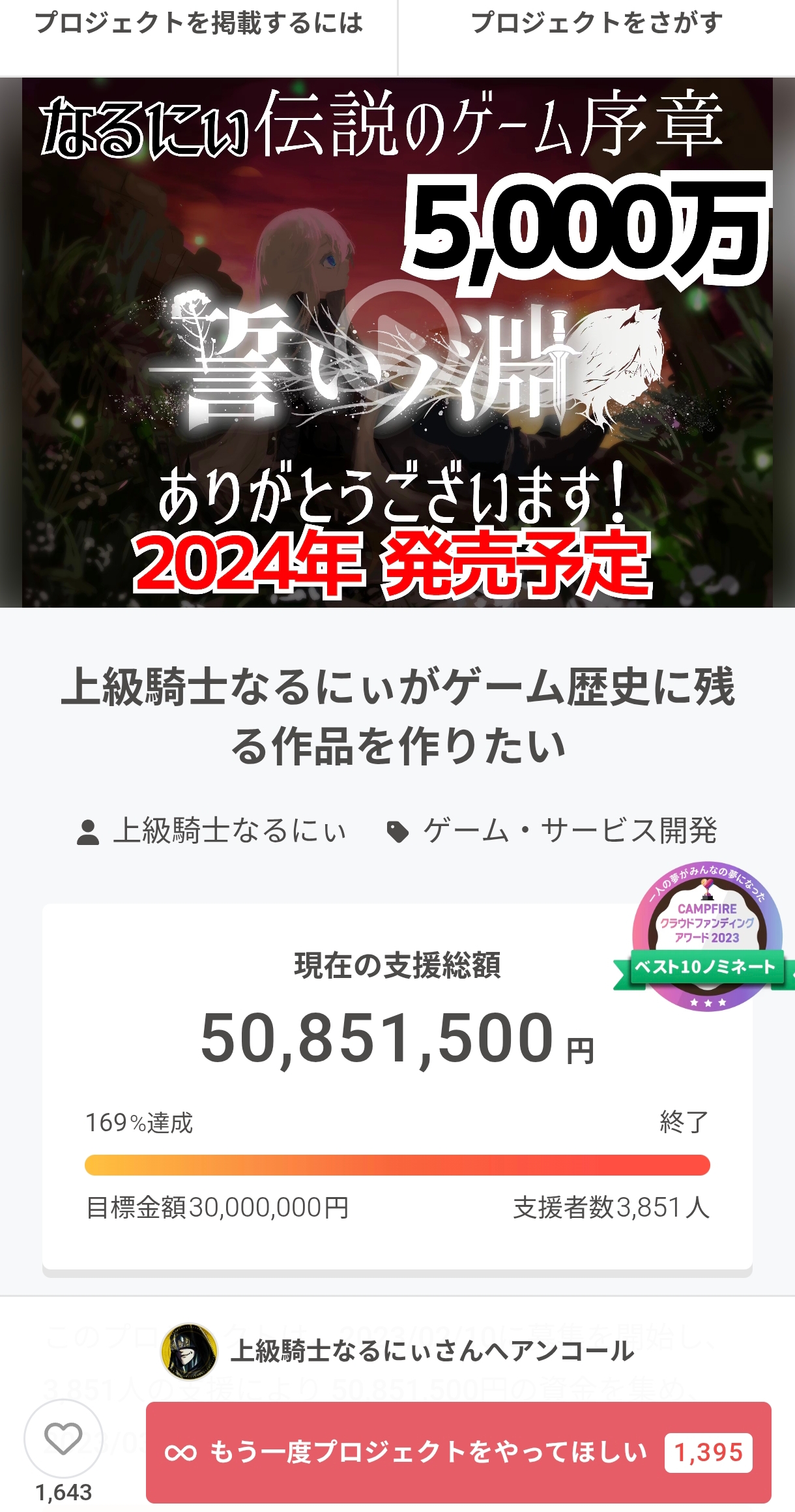 | … | 2226/01/03(土)03:41:44No.1388990199そうだねx3ゲームのクラファンは大手IPとかじゃないと怖くてな… |