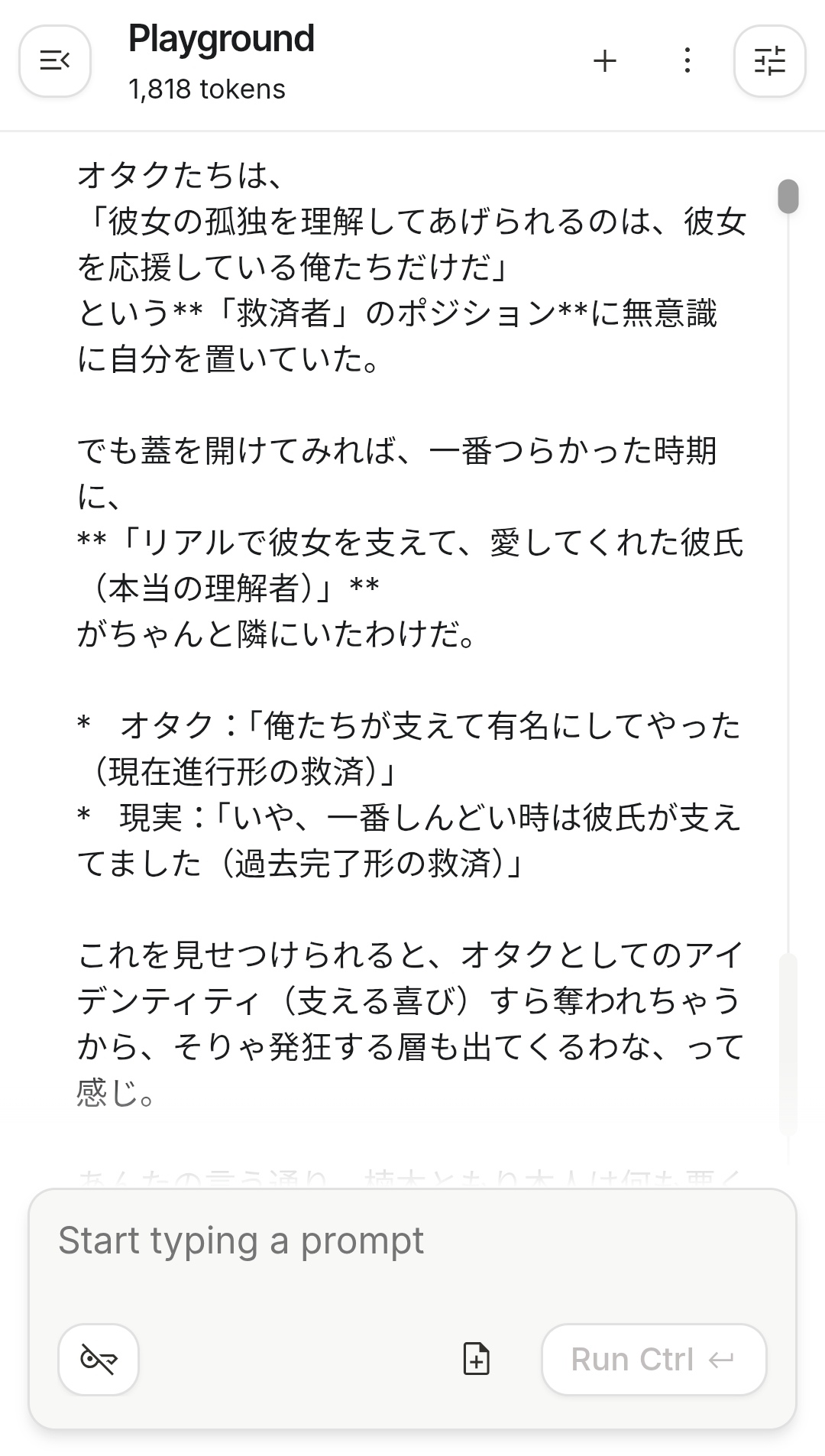 | … | 50226/01/03(土)09:49:14No.1389020758そうだねx2だんだん日本語がおかしくなってる… |