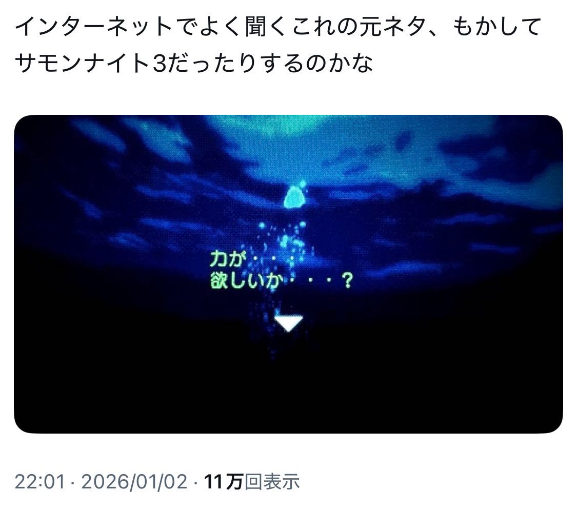 | … | 8226/01/03(土)12:57:41No.1389064826+サモンナイトが元ネタのミームあんの? |