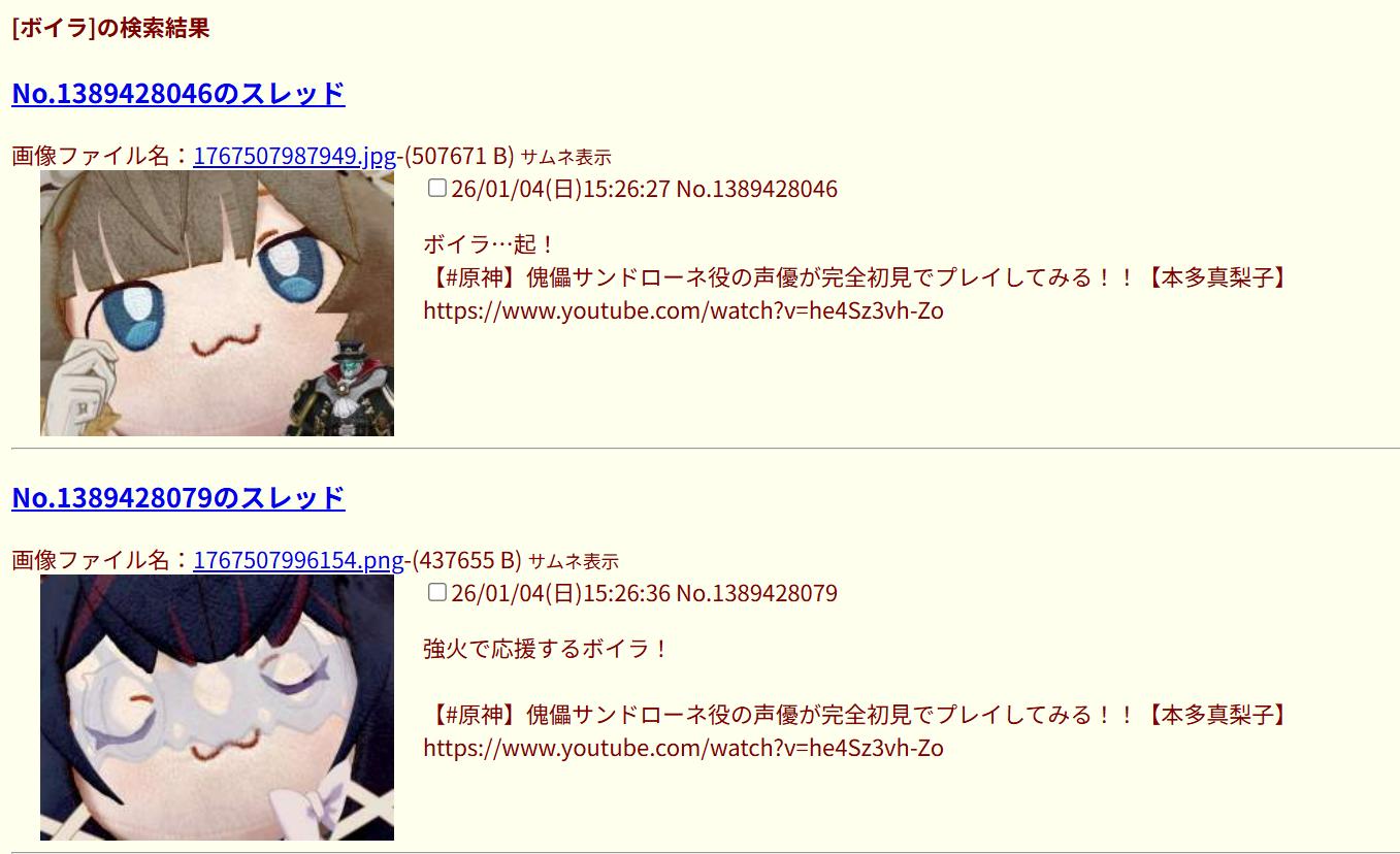 | … | 6026/01/04(日)15:39:44No.1389431274そうだねx3>あんまり原神絡みの動画見ないボイラのつべでも傀儡ちゃん配信おすすめされてるぜぇ |
