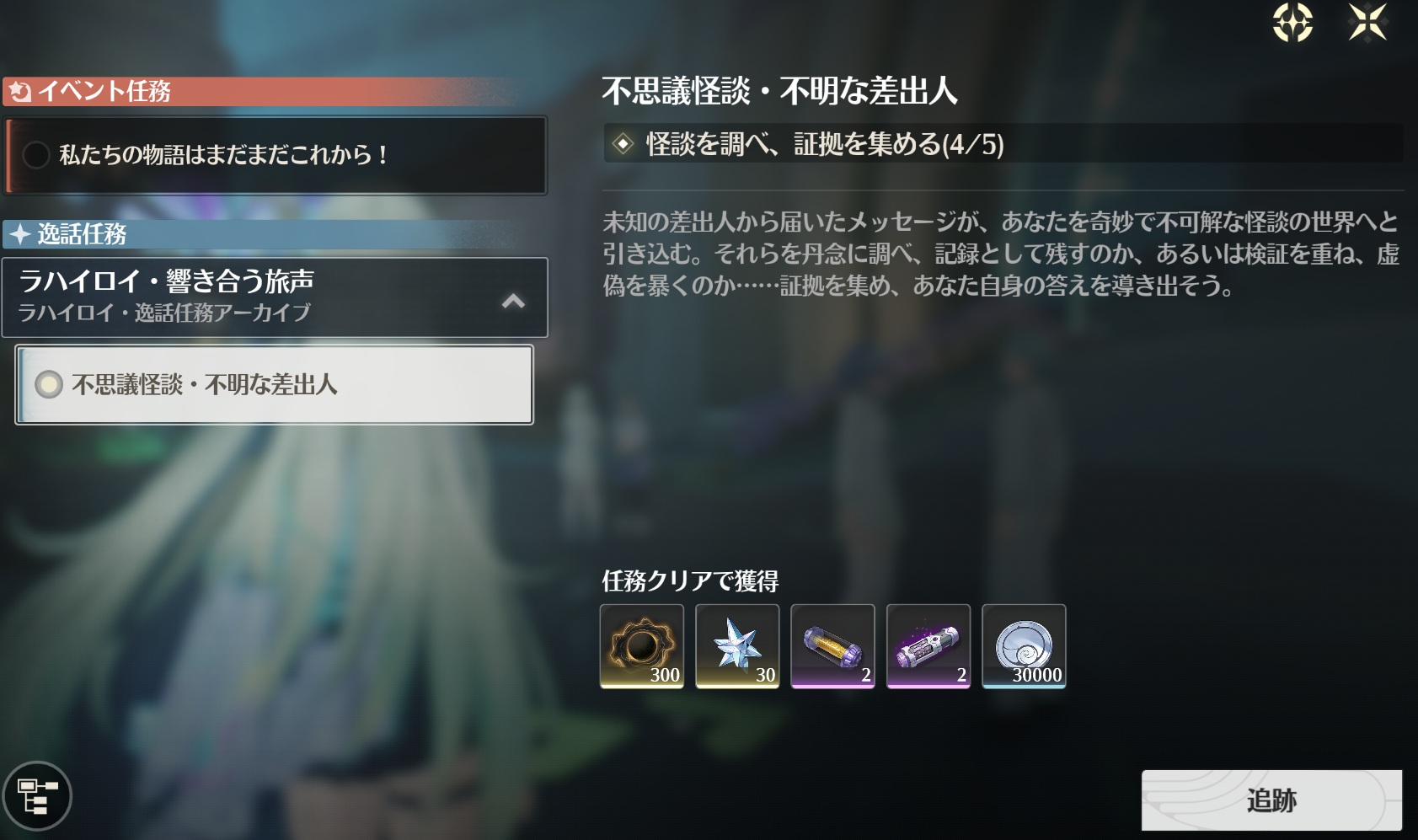 | … | 9026/01/04(日)18:11:05 ID:vkz0PK7wNo.1389469329+怪談の任務は調べてやってない5つの内どれかやれば進むかもしれんチン |