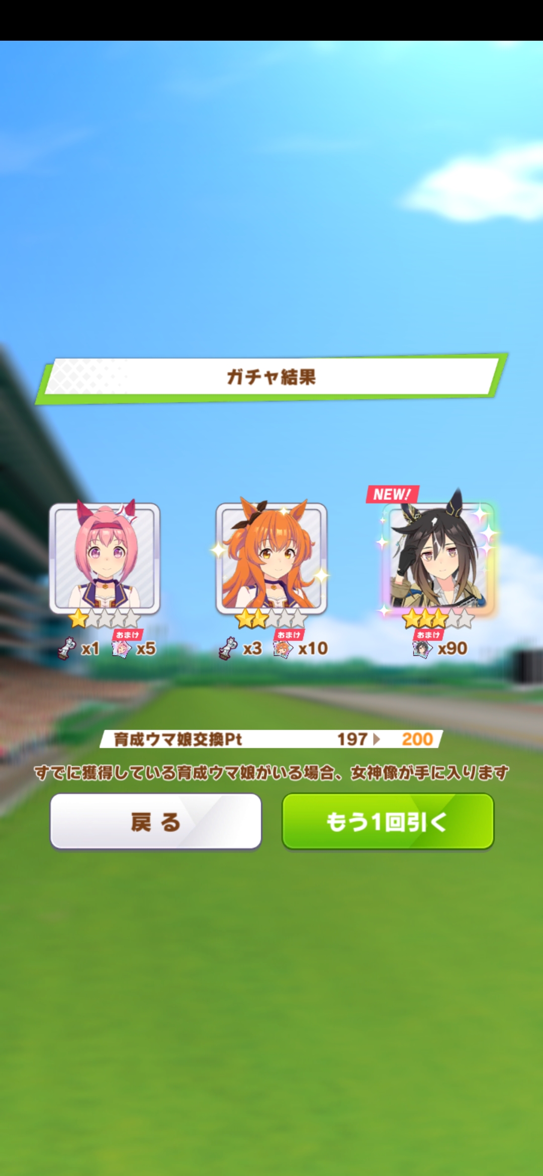 | … | 23626/01/05(月)09:15:50 ID:pmtGl6NANo.1389654487+ヴィルシーナさんのガチャの時に10連の最初で虹でてジェンティルさんだった時も笑いました |