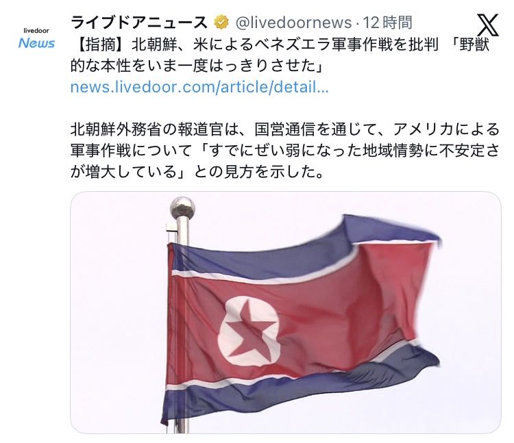 | … | 2026/01/05(月)10:40:42No.1389665737+北のお陰で東アジアが安定してる側面はある |