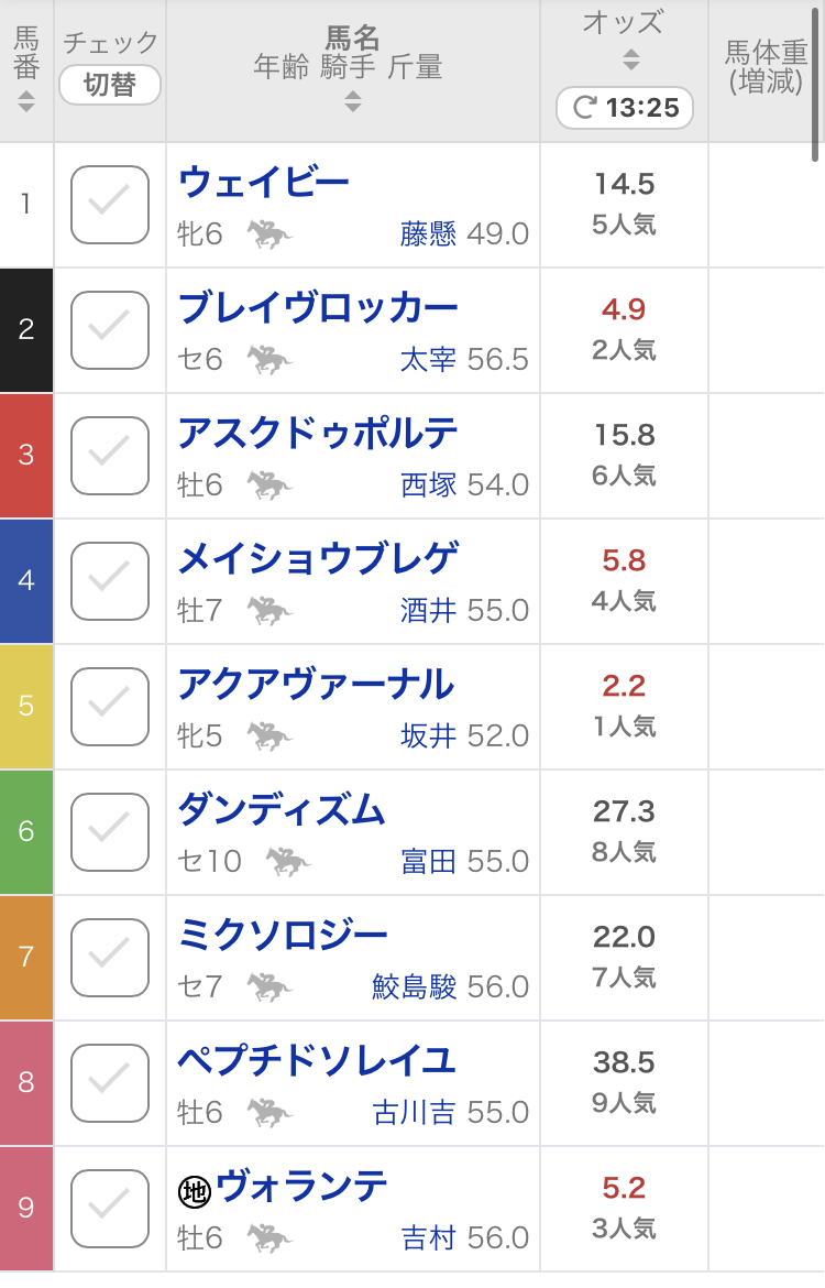 | … | 8926/01/05(月)12:10:18 ID:ecj1ukJgNo.1389680533+ブレイヴソルジャーくん厳しそうですが圧倒的1番人気ですね |