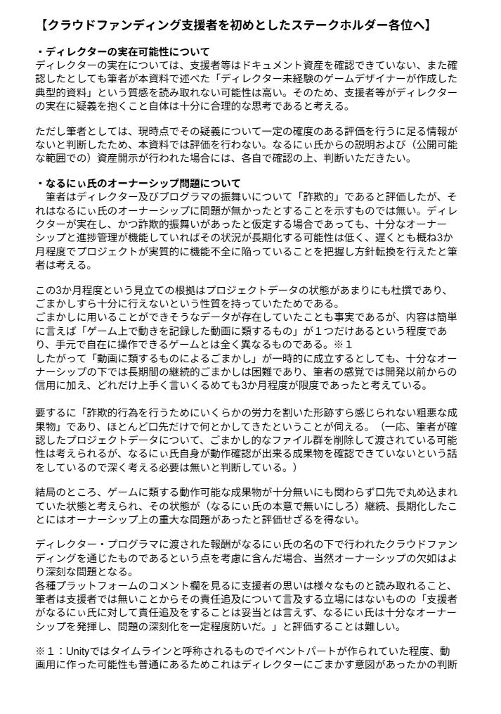 | … | 95726/01/05(月)16:34:06No.1389732953そうだねx2>ゲームシステムの考案、実装はゴブロー氏が行っており、なるにぃ氏はゴブロー氏が離脱した状況を |