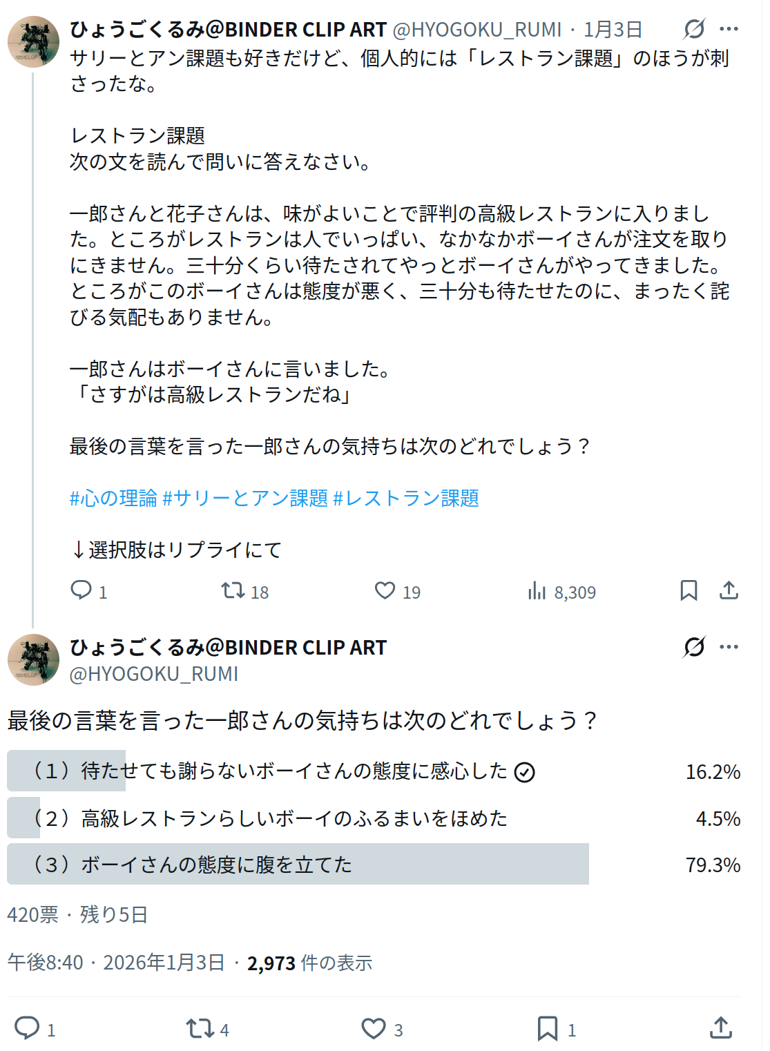 いや3が正解とは限らないだろとか混ぜっ返す人はまた別の逆張り病とかに罹ってると思いますね