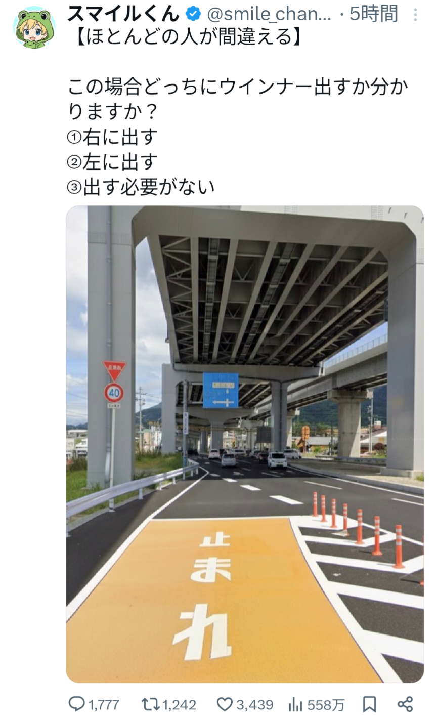 | … | 2826/01/05(月)20:08:22No.1389793572+点線がなければ交差点だから左で点線があったら合流だから右じゃないの? |