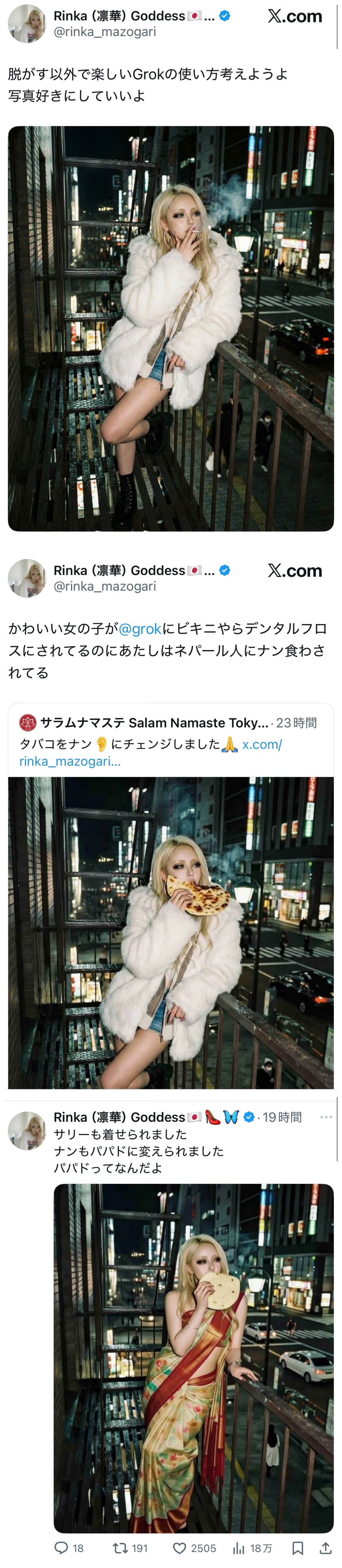 | … | 726/01/05(月)20:01:00No.1389790553+Grokは嫌がるレイヤーにマイクロビキニを着せるためじゃなく |