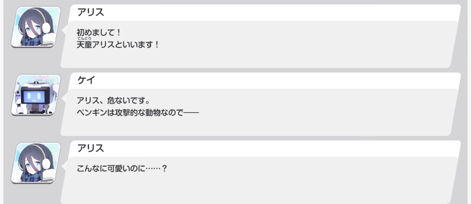 | … | 22726/01/05(月)23:55:52No.1389880690そうだねx2>ペンギンに自己紹介するアリスかわいい |