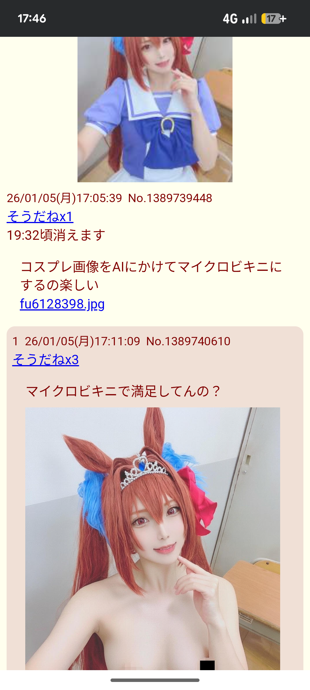 | … | 29526/01/06(火)11:05:18No.1389953678+三次のタレントやアイドルにAIで剥くのはお外で既にあって問題になってたような |