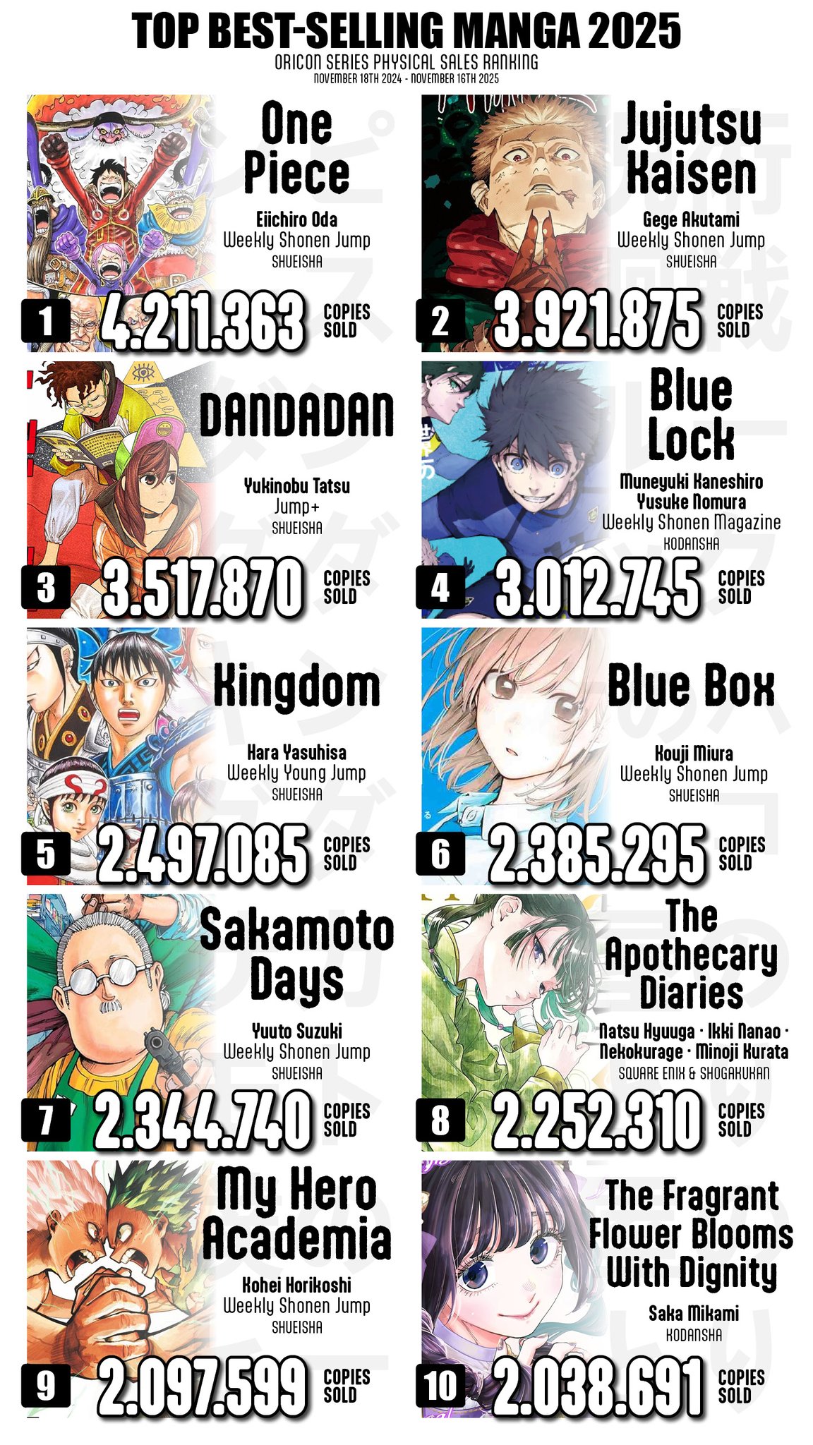 | … | 53726/01/06(火)12:38:20No.1389972710そうだねx1>青のミブロって1000万部いってなかった? |