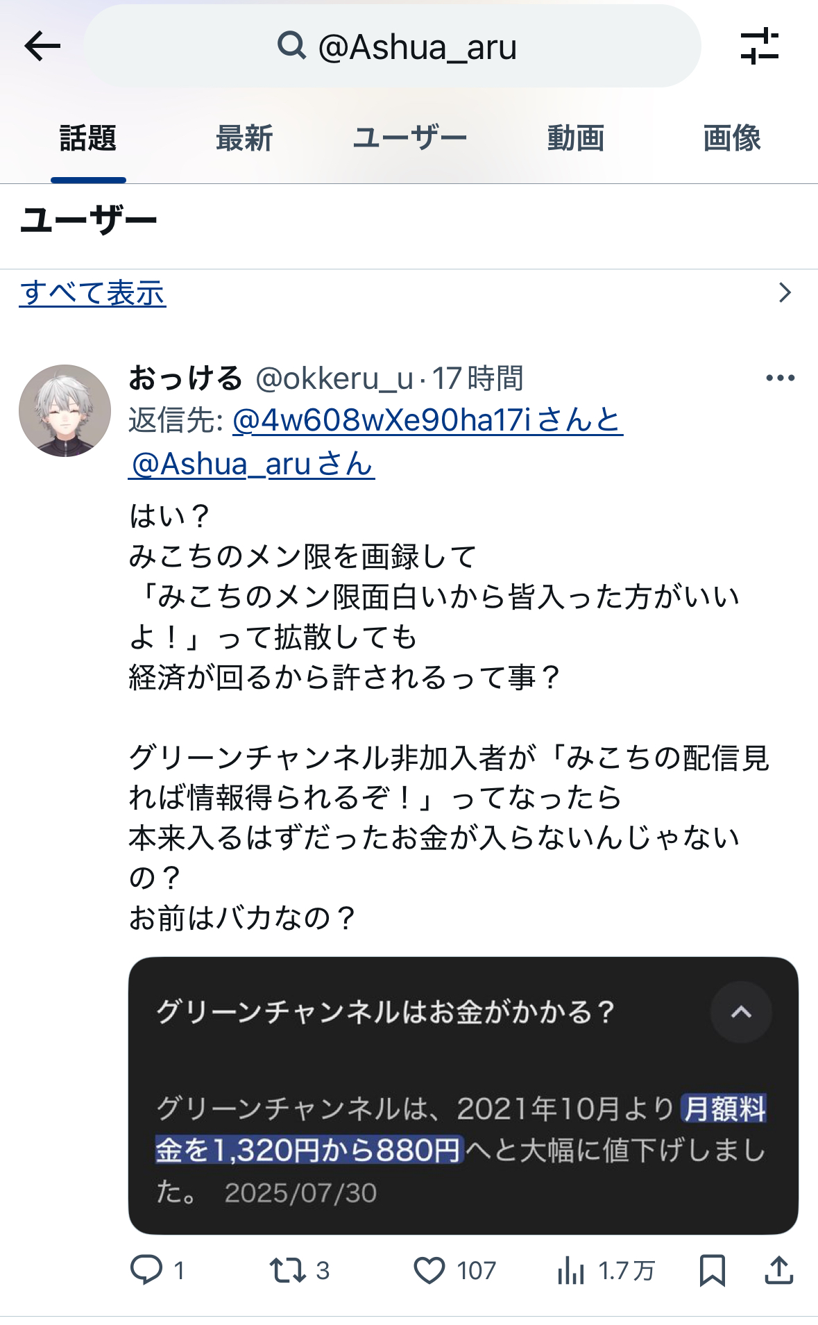 | … | 726/01/06(火)09:56:36No.1389942533そうだねx4>本当にいつも非実在型炎上やろうとしてんなあそこ |