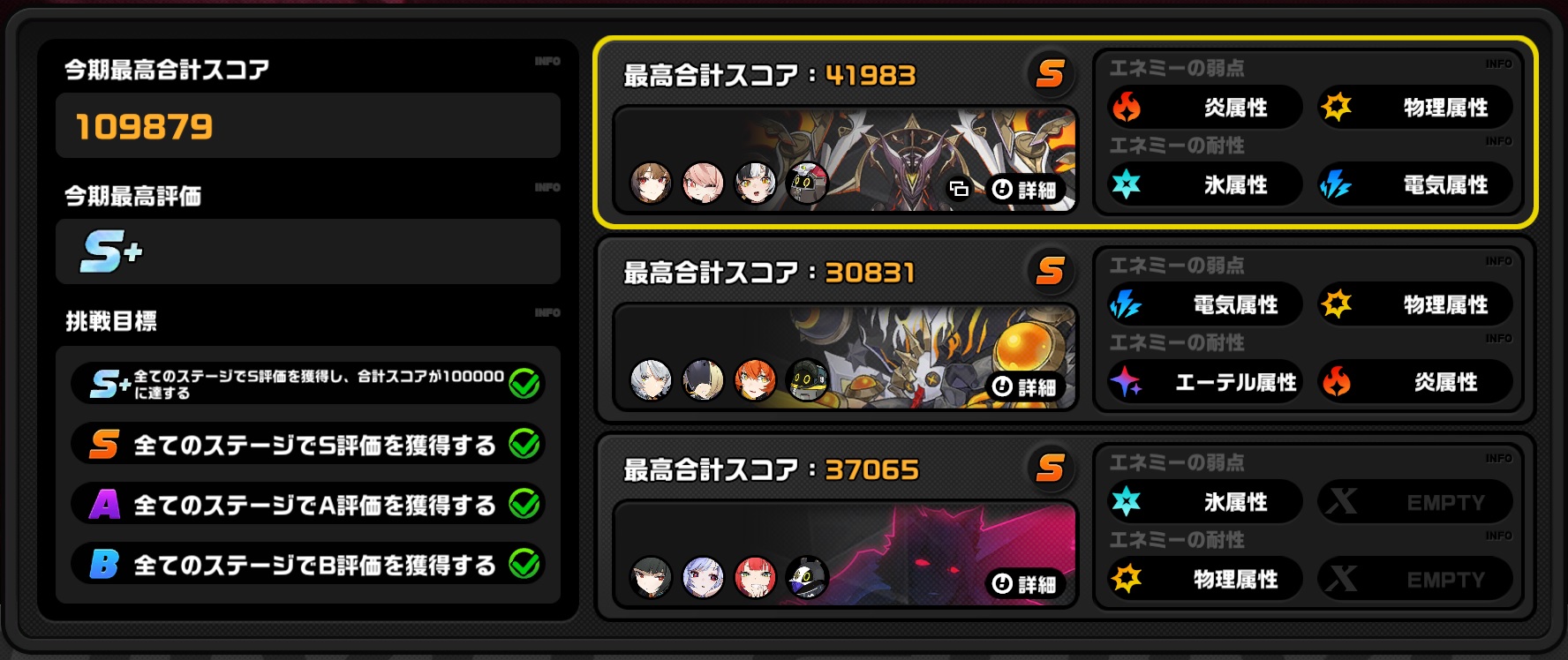 | … | 83826/01/06(火)22:25:34No.1390125519+異常耐性とブレイク有利のボスが出たから雅よりエレンの方がスコア出ることも増えてきたンナ |