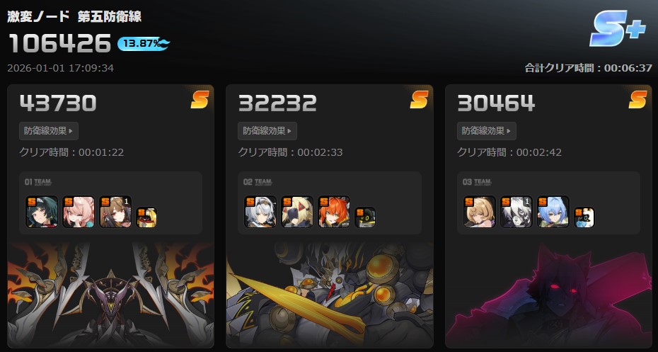 | … | 85026/01/06(火)22:26:05No.1390125709+>異常耐性とブレイク有利のボスが出たから雅よりエレンの方がスコア出ることも増えてきたンナ |