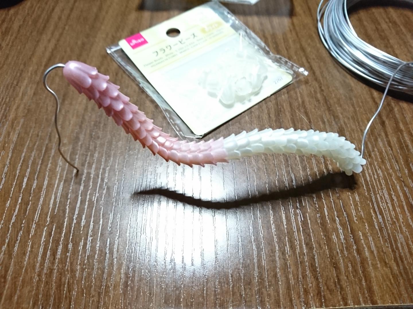 スペーサーにしているビーズをさらに小さいビーズ2個にすることで長く!さらにしなやかに!!なったよ