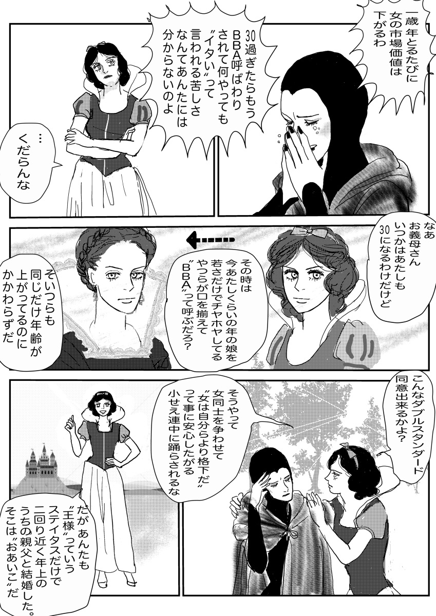 | … | 3926/01/07(水)04:35:58No.1390190610+スレ画の漫画の作者が女同士が争うのは容姿をジャッジする男のせいって言ってるんだからそうなんだろ |